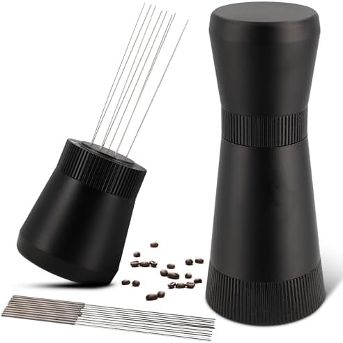 Hey Kaffee-Freunde! Dieses WDT Tool von Vandroop macht euren Espresso richtig gut! Mit 9 superfeinen Edelstahlnadeln (0,25mm) löst es selbst hartnäckige Klumpen im Kaffeepulver auf. Die Nadeln sind aus 304 Edelstahl und die Arbeitshöhe lässt sich von 20-30mm einstellen - passt also zu fast jedem Siebträger. Der integrierte Magnet hält das Tool sicher am Siebträgerkorb fest. Einfach den Griff drücken und drehen - schon verteilt sich das Pulver gleichmäßig für die perfekte Extraktion. Mehr Aroma, weniger Channeling! Das schlichte Design sieht toll aus in jeder Küche oder Kaffeebar. Ein Must-Have für Baristas und alle, die ihren Kaffee lieben. Einfach genial für besseren Espresso!