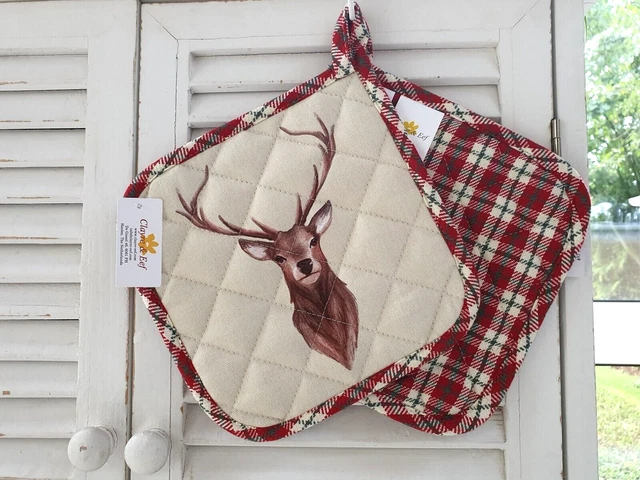 Diese niedlichen Topflappen mit Hirsch-Motiv bringen gemütliche Atmosphäre in deine Küche! Aus 100% Baumwolle gefertigt, sind sie nicht nur super praktisch, sondern auch ein echter Hingucker. Mit den Maßen 20x20cm liegen sie gut in der Hand und schützen zuverlässig vor Hitze. Das rustikale Design im ländlich-nostalgischen Stil kommt aus dem niederländischen Dorf Haelen und verwandelt jede Küche in eine gemütliche Wohlfühloase. Perfekt als Geschenk für alle, die es urig und charmant mögen. Einfach in die Hand nehmen und sich wie zu Hause fühlen!
