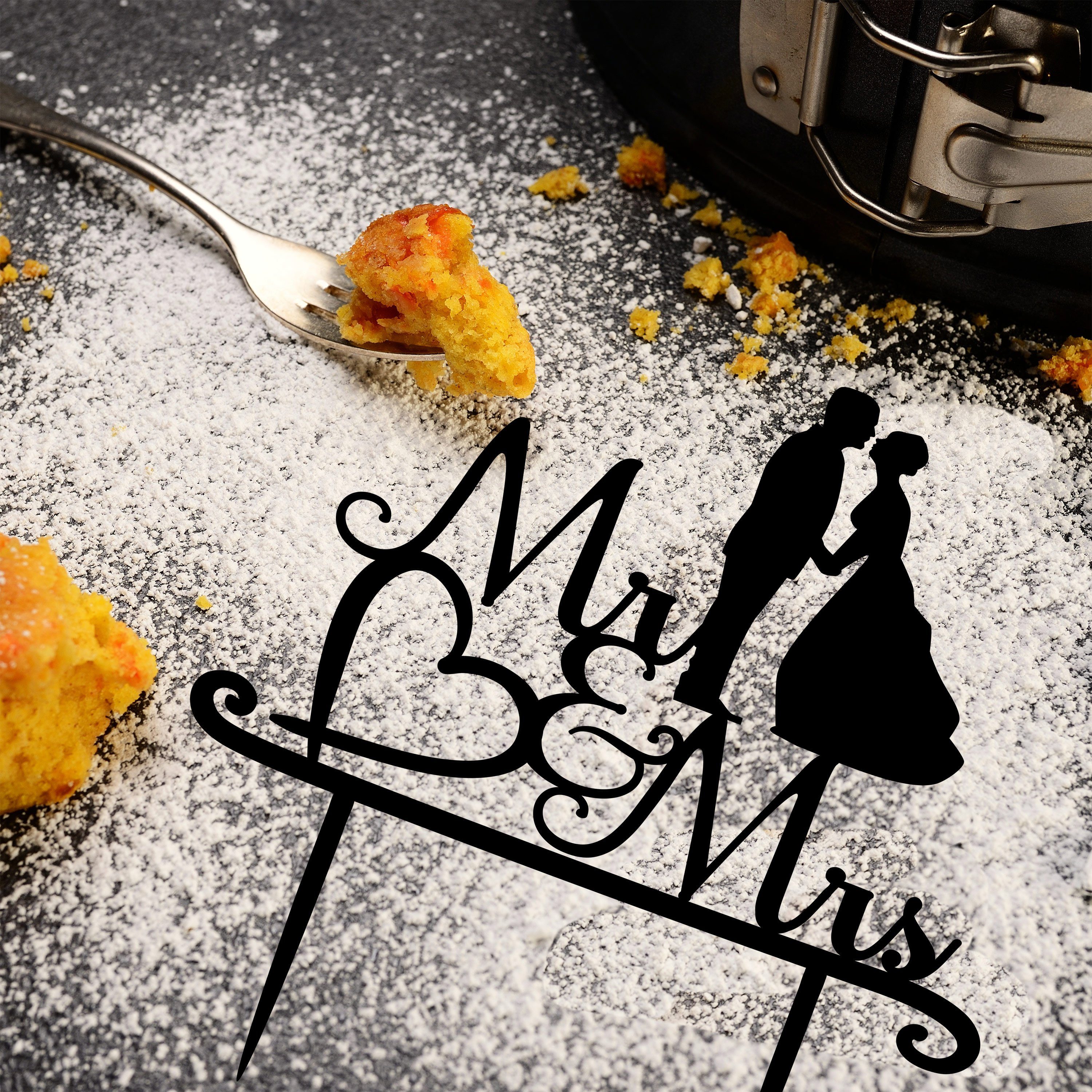 Oh, das ist ja süß! Dieser Mr & Mrs Cake Topper ist perfekt für eure Hochzeitstorte. Aus 3mm Acrylglas und komplett transparent - sieht mega edel aus! \\n\\nMaße: 13x13cm groß, mit 4cm langen Einsteckspießen. Die weiße Schrift leuchtet wunderschön gegen die Torte. \\n\\nDas Besondere: Lasergeschnitten! Das bedeutet, jeder Buchstabe ist haarscharf ausgeschnitten, die Kanten sind glatt und glänzend. Keine scharfen Ecken, nichts was abbrechen kann. \\n\\nEinfach in die Torte stecken und schon hat man den Hingucker auf der Hochzeitstorte. Qualität aus Deutschland - da weiß man, was man hat! \\n\\nOb für die klassische weiße Torte oder was Modernes - dieser Topper passt immer. Macht jedes Dessert zum absoluten Eye-Catcher! \\n\\nPerfekt als Geschenk fürs Brautpaar oder für die eigene Hochzeit. Einfach schön, einfach praktisch, einfach perfekt für den großen Tag!