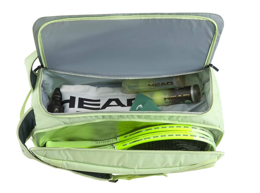 Perfekte Sporttasche für Tennis, Pickleball und Fitness! Mit 21,4 Litern Fassungsvermögen und nur 0,7kg Gewicht - leicht und geräumig. \\n\\nMaße 39x15x36,5cm - passt problemlos mehrere Schläger, Schuhe, Kleidung und Accessoires. Aus robustem, wasserabweisendem Polyester. \\n\\nPraktische Features: Vorderes Magnetfach für Schläger, Seitentaschen für Flaschen, Mesh-Innentaschen für Bälle. Stabilisierende Bodenplatte. \\n\\nVerstellbare Trageriemen - tragbar als Schultertasche, Handtasche oder Crossbody. Abnehmbarer Griff für extra Komfort. \\n\\nMaschinenwaschbar - einfach zu reinigen. Modernes Design in Grün - stylisch und funktional. \\n\\nIdeal für Training, Wettkämpfe, Reisen oder als tägliche Shopper-Tasche. Tolles Geschenk für Sportbegeisterte!