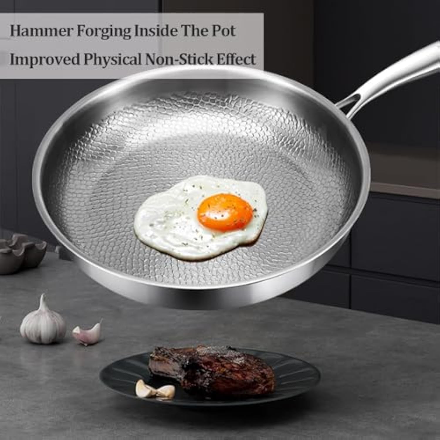 Diese Tovara Titanium Pfanne ist ein echter Küchen-Allrounder! Aus hochwertiger Titanlegierung, unbeschichtet und super langlebig. Erhältlich in Größen von 26cm bis 34cm - hier die 34cm Version. Mit 5-Schicht-Boden für gleichmäßige Wärmeverteilung ohne Hotspots. Gute Antihaftwirkung, du brauchst kaum Öl zum Braten. Für alle Herdarten geeignet: Gas, Elektro, Induktion. Backofenfest bis 260°C. Im Lieferumfang: Pfanne, Spachtel, Suppenlöffel und Handschuhe. Leicht und robust, einfach zu reinigen. Fassungsvermögen für 4-6 Portionen - ideal für die ganze Familie. Eine Pfanne, die wirklich alles kann und dein Kochen revolutioniert! Einfach ausprobieren und vom Unterschied überzeugen lassen.