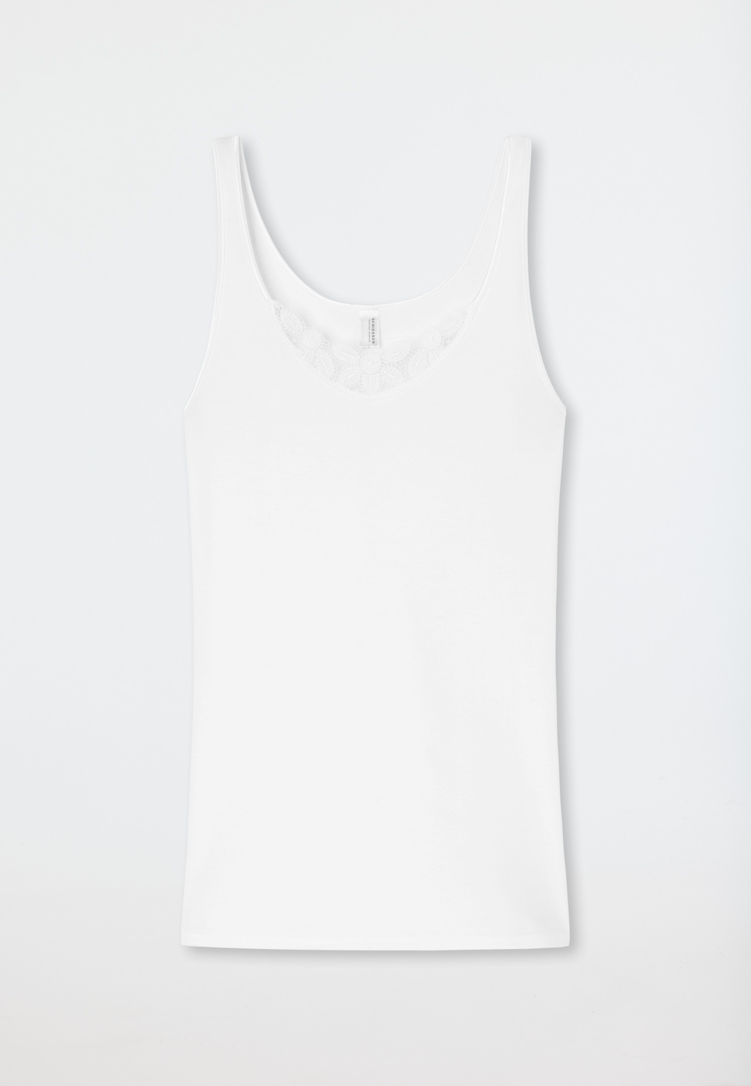 Die femininen Ornament-Stickereien an den Trägern geben dem Top das gewisse Etwas - nicht nur praktisch, sondern auch noch hübsch anzusehen. Die Feinripp-Qualität ist besonders hochwertig und angenehm auf der Haut.