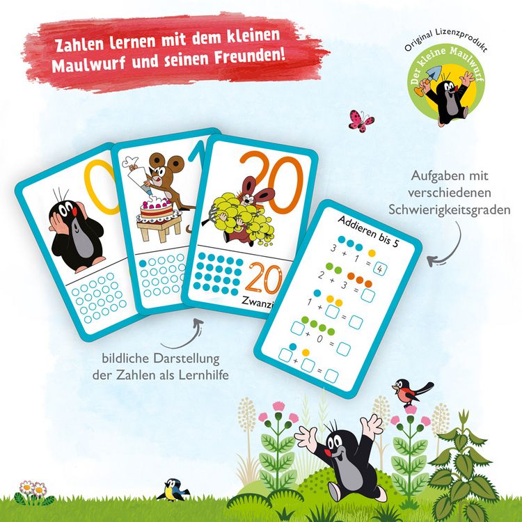 Lernen mit dem kleinen Maulwurf macht einfach Spaß! Dieses niedliche Kartenset mit 28 fröhlich-bunten Lernkarten bringt Kindern das ABC bei. Mit praktischen Pfeilen, die die Schreibrichtung zeigen, und kleinen Übungen wird das Alphabet lernen zum Kinderspiel. Perfekt für Vorschulkinder und Erstklässler, die spielerisch die Buchstaben entdecken wollen. Achtung: Nicht für Kinder unter 3 Jahren geeignet wegen verschluckbarer Kleinteile. Ein wunderbares Geschenk für alle Maulwurf-Fans und eine tolle Unterstützung für die ersten Schritte in die Welt der Buchstaben!