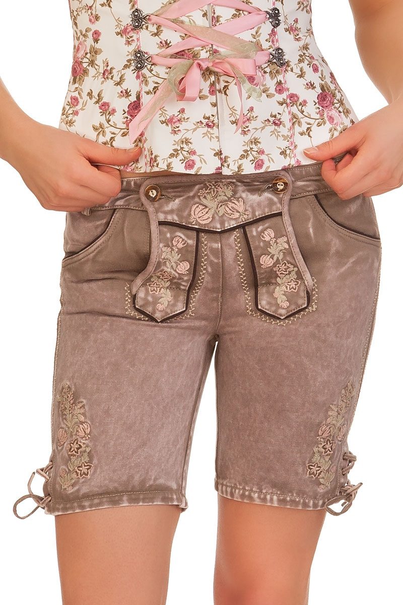 Trachten Lederhose Damen Kurz - Oktoberfest Outfit Mit Stickerei