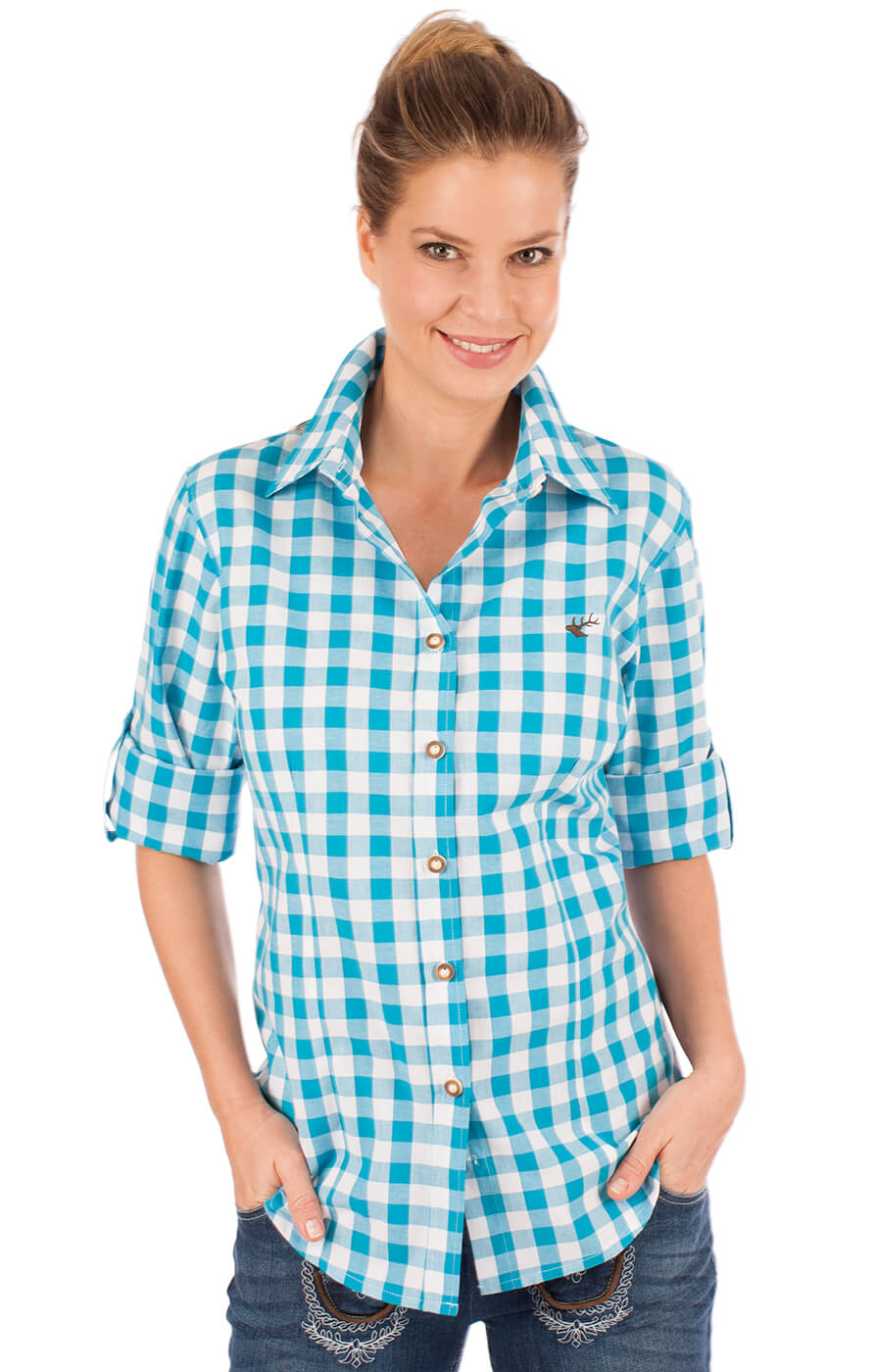 • Kariertes Trachtenhemd Damen - Oktoberfest Bluse Mit Stehkragen