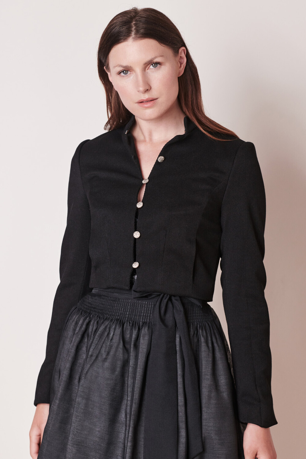 Kobilee Trachtenjacke Damen Schwarz - Dirndljacke Slim Fit Mit Stehkragen