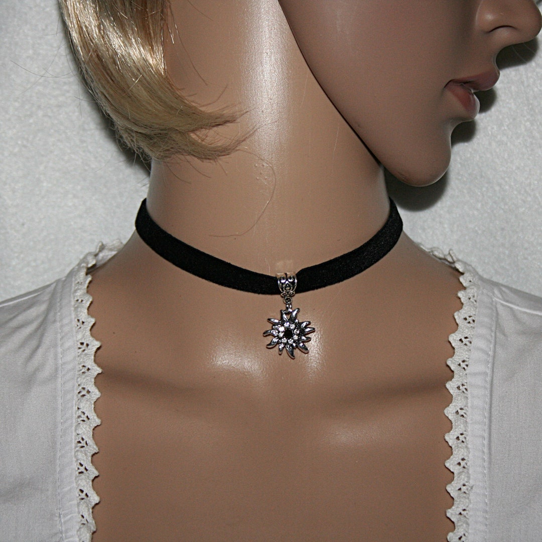Wiesn-Feeling pur! Diese Trachtenkette ist das absolute Must-have für dein Dirndl-Outfit. In elegantem Schwarz mit funkelnden Strasssteinen, einem süßen Herz-Anhänger (3x2,7cm) und traditionellem Edelweiß-Motiv. Das Kropfband ist verstellbar von 32-40cm, sitzt also perfekt. Aus hochwertiger Zinklegierung und samtigem Samtstoff - das sieht nicht nur luxuriös aus, sondern fühlt sich auch super an. Perfekt verarbeitet mit präzise gesetzten Steinen, die das Licht wunderschön reflektieren. Ob zum Oktoberfest, Volksfest oder jeder anderen Gelegenheit, wo du im Dirndl glänzen willst - diese Kette komplettiert dein Outfit perfekt. Aber nicht nur zur Tracht - auch zum eleganten Abendkleid oder als besonderer Akzent im Alltag macht sie eine super Figur. Die harmonische Kombination aus Herz und Alpenblumen ist einfach zeitlos schön. Geliefert in einer hochwertigen Samtschachtel - also auch perfekt als Geschenk für die beste Freundin, Schwester oder einfach für dich selbst. Ein Schmuckstück, das nicht nur äußerlich glänzt, sondern auch deine Persönlichkeit unterstreicht. Einfach anziehen und strahlen - mehr braucht's nicht für den perfekten Wiesn-Look!