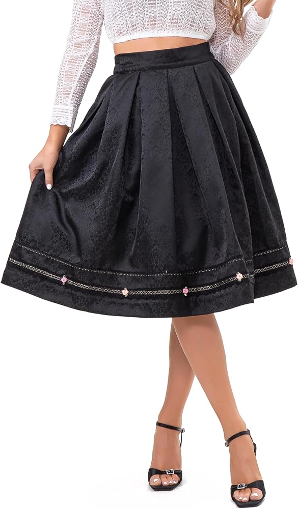 • Dirndl Rock Knielang Für Damen - Trachtenrock Im Vintage-Look Mit Jacquard-Muster Und Schleife