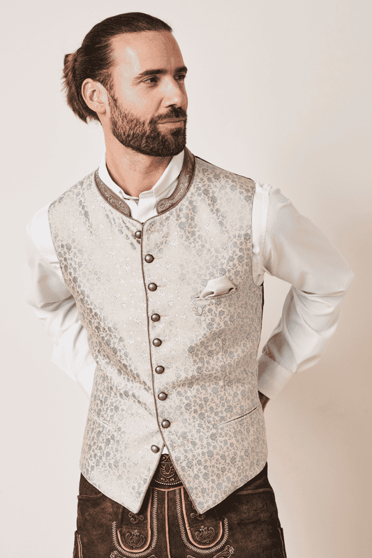 Dirndl und Lederhosen aufgepasst - diese Trachtenweste macht jedes Festoutfit perfekt! Das ärmellose Gilet im vintage Stil ist dein idealer Begleiter für Oktoberfest, Hochzeiten, Konzerte und Volksfeste. Mit dem festen Stehkragen und den edlen Metallknöpfen sieht sie einfach authentisch aus und unterstreicht deine Figur. Unter der Weste trägst du einfach ein Hemd oder T-Shirt - schon bist du festlich gekleidet! Das praktische Design hat ein integriertes Stecktuch-Fach für dein Accessoire und eine verdeckte Reißverschlusstasche für Geldbeutel oder Handy. Super sicher! Der dehnbare Strickrücken sorgt für perfekte Bewegungsfreiheit - auch beim ausgelassenen Feiern. Die Weste gibt's in großen Größen und slim Fit, sodass sie wirklich jedem passt. Aus atmungsaktivem Trachtenstoff gefertigt, ist sie angenehm zu tragen und durch doppelte Nähte an Belastungspunkten besonders langlebig. Ob als Brautführer auf der Hochzeit oder beim Biergarten-Besuch - mit dieser Weste machst du immer eine gute Figur. Traditionell, aber mit modernem Komfort - so muss Trachtenmode sein!