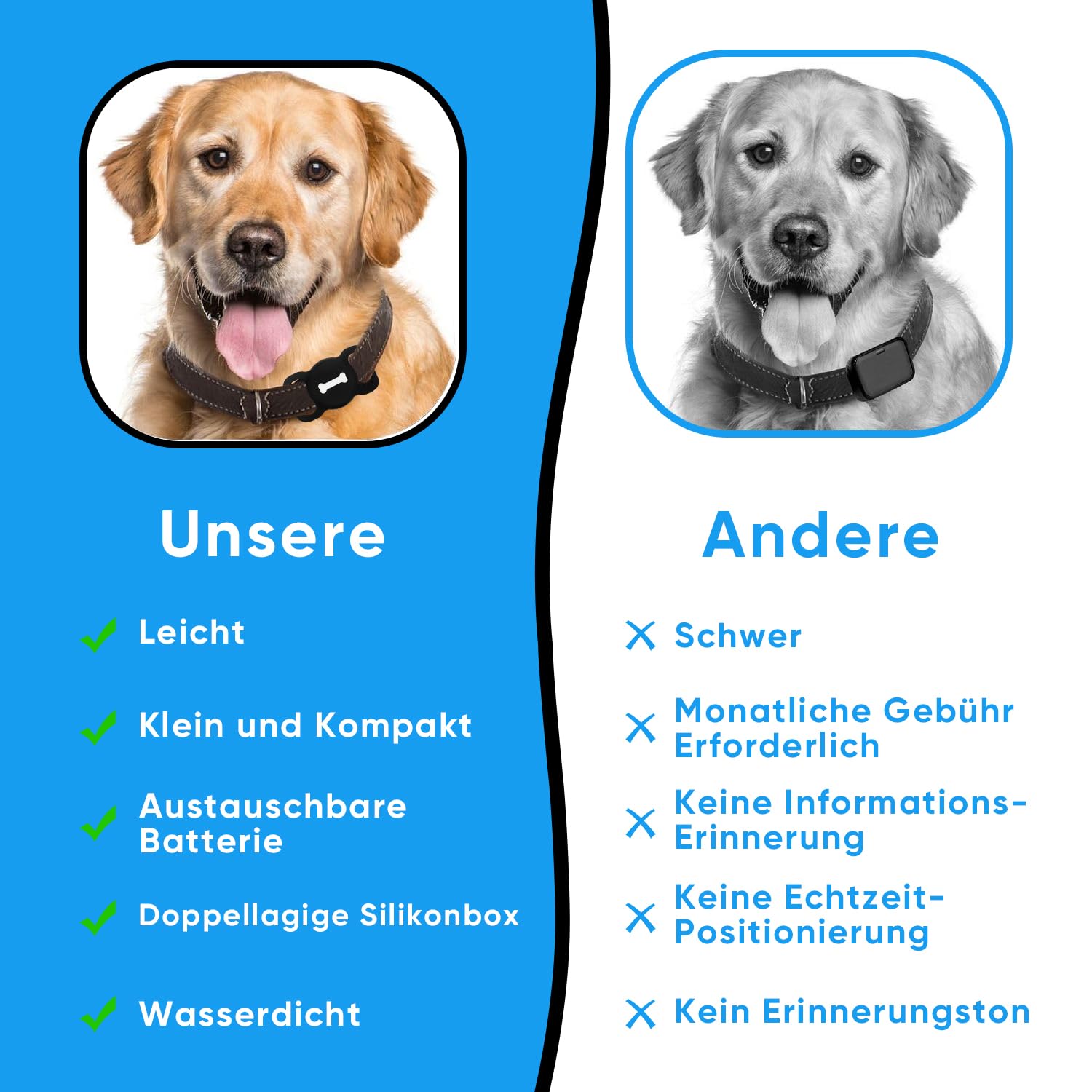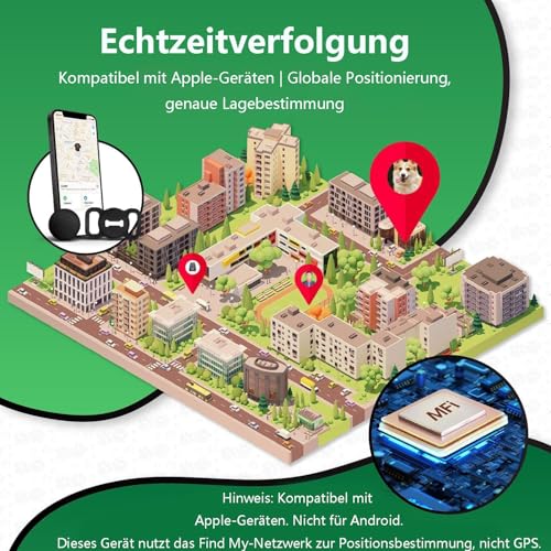 Nie wieder Angst vor verlorenen Hunden! Dieser Tracker arbeitet mit der iOS 'Find My' App - keine extra App nötig! Komplett ohne monatliche Gebühren - du kaufst ihn einmal und nutzt ihn ewig. Einfach per Bluetooth mit deinem iPhone verbinden und schon siehst du wo dein Hund ist. Perfekt für Spaziergänge im Park oder wenn der Hund mal ausbüxt. Wasserdichtes und robustes Design - hält auch wilden Abenteuern stand. Leicht und unauffällig am Halsband befestigt. Wenn dein Hund außer Reichweite kommt, warnt dich die App sofort. Andere Apple-Geräte in der Nähe helfen beim Orten - je mehr iPhones in der Gegend, desto besser die Ortung! Einfach Setup: Knopf drücken, in 'Find My' hinzufügen, Namen vergeben - fertig! Frieden für Hundebesitzer - unbezahlbar!