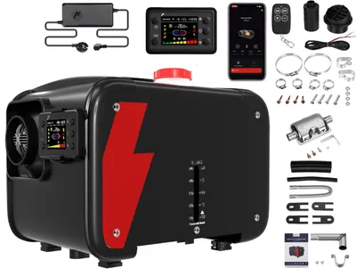 Plug-and-Play mit 220V AC und 12/24V DC Anschluss. Steuer sie per Bluetooth-App, Fernbedienung oder Display. Verbraucht nur ca. 1 Gallone Diesel pro Nacht für 20-25m².