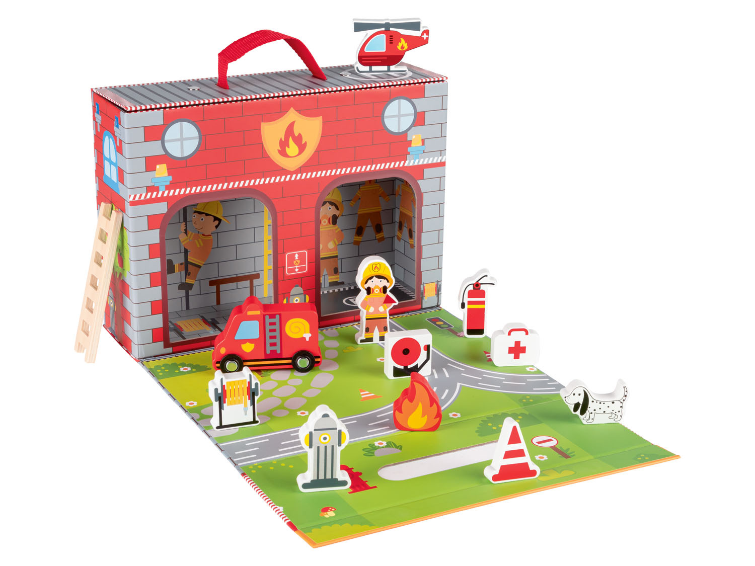 Feuerwehr-Spielkoffer 13-teilig - Tragbare Spielstation Für Kinder