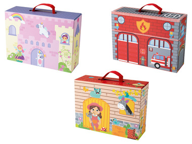 Feuerwehr-Alarm für unterwegs! Dieser praktische Spielkoffer verwandelt sich im Handumdrehen in eine komplette Feuerwehr-Station. Mit 13 Teilen including Spielfiguren und Fahrzeugen - alles sicher im Koffer verstaut. Die große Spielfläche bietet Platz für kreative Rollenspiele. Perfekt für Reisen, Besuche oder einfach für zu Hause. Fördert die Fantasie und sozialen Fähigkeiten deines Kindes. Aus stabilem Karton und MDF - langlebig und kindgerecht. Einfach zu transportieren und schnell wieder zusammengepackt. Ideal für Kinder ab 1,5 Jahren. Mach deinem kleinen Feuerwehrfan eine Freude! Stundenlangen Spielspaß garantiert - ob alleine oder mit Freunden.