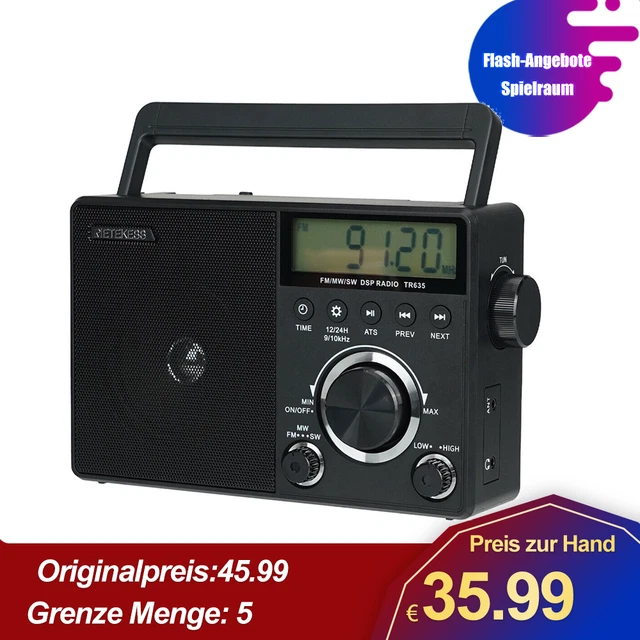 Oldschool aber cool! Dieses kleine Radio bringt Musik und Nachrichten überall hin. AM, FM und Kurzwelle, mit 3W Lautsprecher für guten Sound. Nur 12.9x7x3.4cm klein, passt in jede Tasche. Läuft mit 2 AA-Batterien (nicht dabei), also perfekt für Garten, Camping oder Blackout. Aus robustem ABS-Kunststoff. Einfach einschalten und loshören - Radio wie früher, nur kleiner. Hol dir das Radio und hab immer Musik dabei!