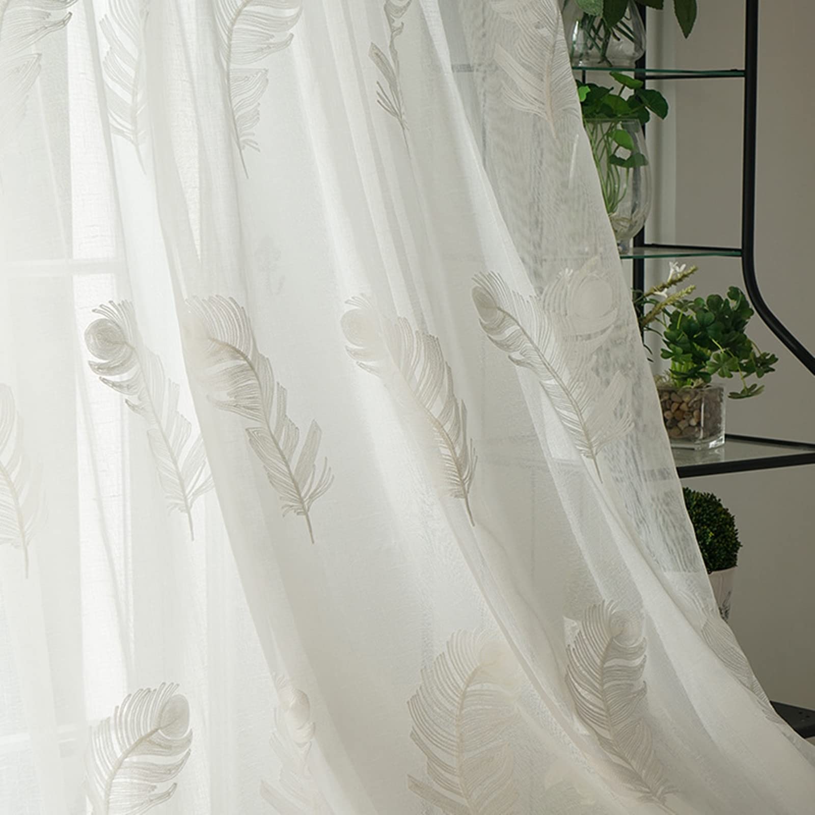 • BOD HOME 2er Set Transluzente Vorhänge 140x260cm - Weiße Tüllvorhänge Für Wohnzimmer & Schlafzimmer