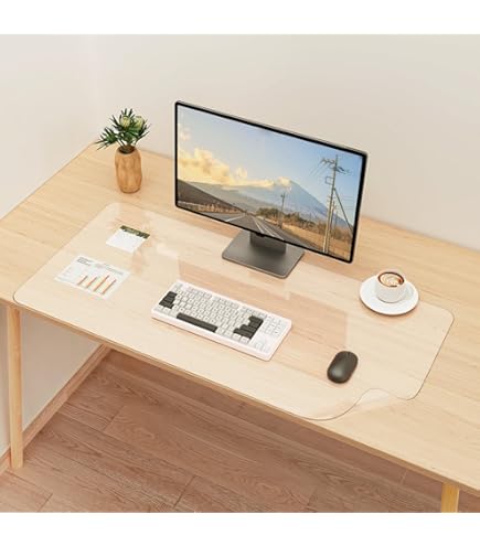 Schütze deinen Schreibtisch mit dieser praktischen Yanen Tischunterlage! Maße: 80x40cm - passt auf die meisten Schreibtische. Aus 1,5mm starkem PVC - wasserdicht, ölbeständig, schützt vor Kratzern und Flecken. Zwei Varianten: Komplett transparent (kannst du Fotos oder Notizen darunter legen) oder mit matter Unterseite (mehr Grip auf glatten Oberflächen). Abgerundete Ecken - keine scharfen Kanten, die kratzen. Inklusive Anti-Rutsch-Aufkleber und Mini-Mauspad - alles was du brauchst! Einfach zu reinigen - mit Tuch abwischen. Super für Büro, Homeoffice, Schule - hält deinen Arbeitsplatz sauber und geschützt. Wird gerollt geliefert - mit beiliegendem Klebeband leicht flach zu bekommen.