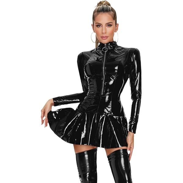 Wow, was für ein verführerisches Kleid! Dieses Wetlook-Kleid in Lack-Optik ist einfach der Hammer für besondere Anlässe. Der transparente Stoff betont deine Figur auf pikante Weise - perfekt für einen verführerischen Auftritt! Als Maxikleid mit langen Ärmeln und Rundhalsausschnitt sitzt es wie angegossen. Die glänzende Oberfläche verleiht dir einen einzigartigen Schimmer der alle Blicke auf sich zieht. Ob für einen romantischen Abend zu zweit, die Clubnacht oder besondere Feiern wie Valentinstag - mit diesem Kleid wirst du zur absoluten Diva! Der Stoff ist hautfreundlich und weich, trotz der engen Passform super bequem zu tragen. Mit Überziehverschluss leicht an- und auszuziehen. Perfekt als Bikini-Überwurf für die Strandparty oder als alleiniger Hingucker beim Date. Wenn du mal was ganz Besonderes suchst das aus der Masse heraussticht - hier ist es! Einfach anziehen und die Blicke genießen - dieses Kleid macht dich zur unangefochtenen Königin des Abends! Aber Achtung: Nicht für schüchterne Typen - damit ziehst du garantiert alle Aufmerksamkeit auf dich!