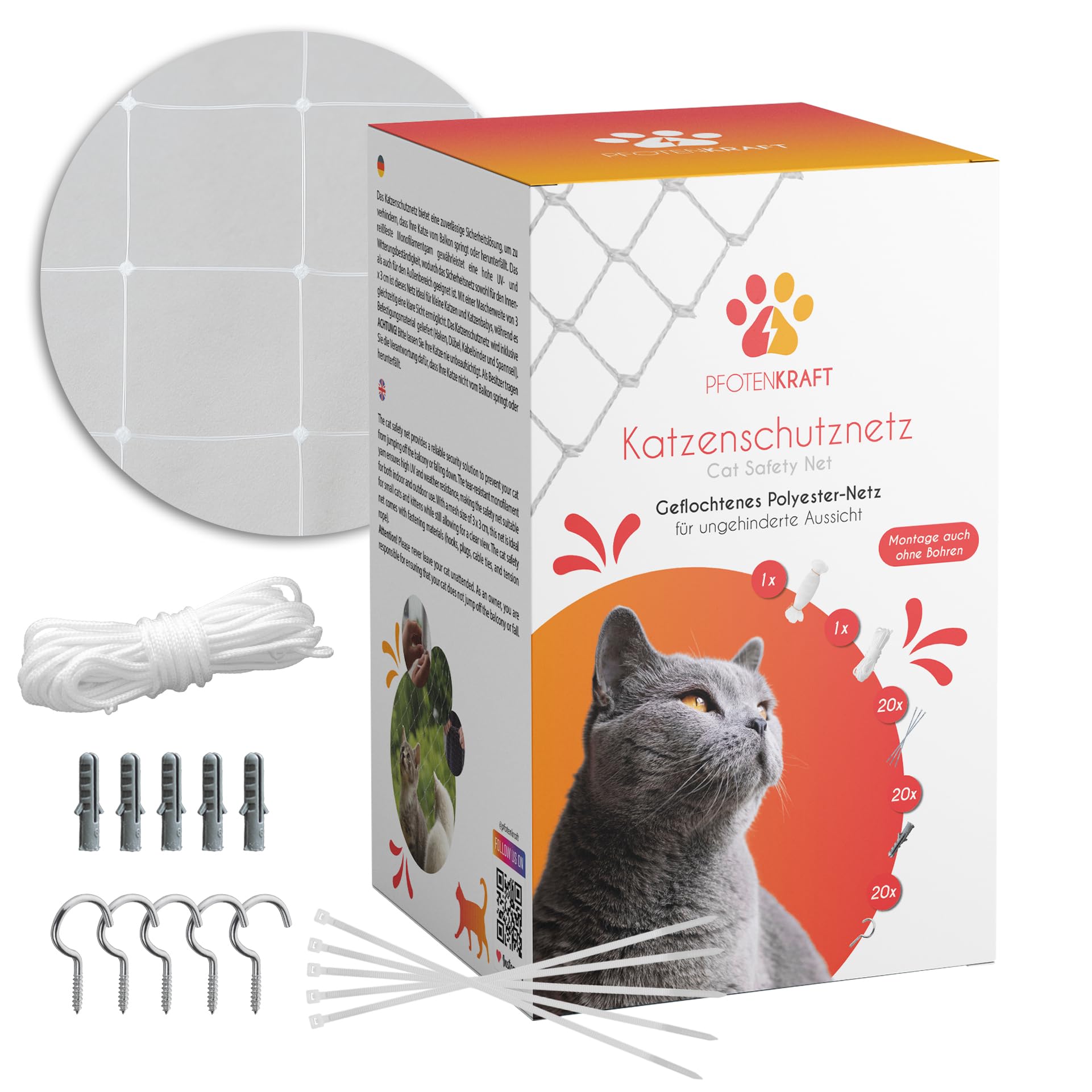Endlich Sicherheit für deine Katze auf dem Balkon! 10x3m groß - passt an die meisten Balkone! Transparent - deine Katze kann alles sehen, du hast freie Sicht! Ohne Bohren - einfach mit Kabelbindern befestigen! Reißfestes Nylon - hält auch wilden Katzen stand! Einfach zuschneiden - für jede Balkongröße perfekt! Auch für Terrassen, Fenster oder als Vogelnetz geeignet! Deine Katze kann sicher die Aussicht genießen ohne runterzufallen! Einfache Montage - keine Werkzeuge nötig! Wetterfest - hält bei Regen, Sonne und Wind! Auch als Rankhilfe für Pflanzen nutzbar! Verhindert dass Spielzeug oder andere Dinge runterfallen! Deine Katze hat mehr Freiheit und du mehr Ruhe! Perfekt für Mieter - keine Löcher in der Wand! Einfach ausrollen, zuschneiden, befestigen - fertig! Macht deinen Balkon zur sicheren Katzen-Zone!