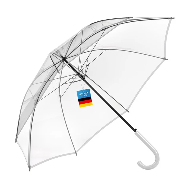 Regen? Kein Problem! Mit diesem transparenten Regenschirm siehst du alles und wirst trotzdem nicht nass. Mit stolzen 95 cm Durchmesser - das ist 40% mehr Fläche als bei vielen anderen Taschenschirmen! Aus stabilem PVC mit silberner Paspelierung, rostfrei und super langlebig. Ein Knopfdruck genügt und er öffnet sich wie von Zauberhand. Sieht nicht nur mega stylisch aus, sondern hält auch windigem Wetter stand. Der absolute Hingucker - perfekt für alle, die auch bei Regen gut aussehen wollen!