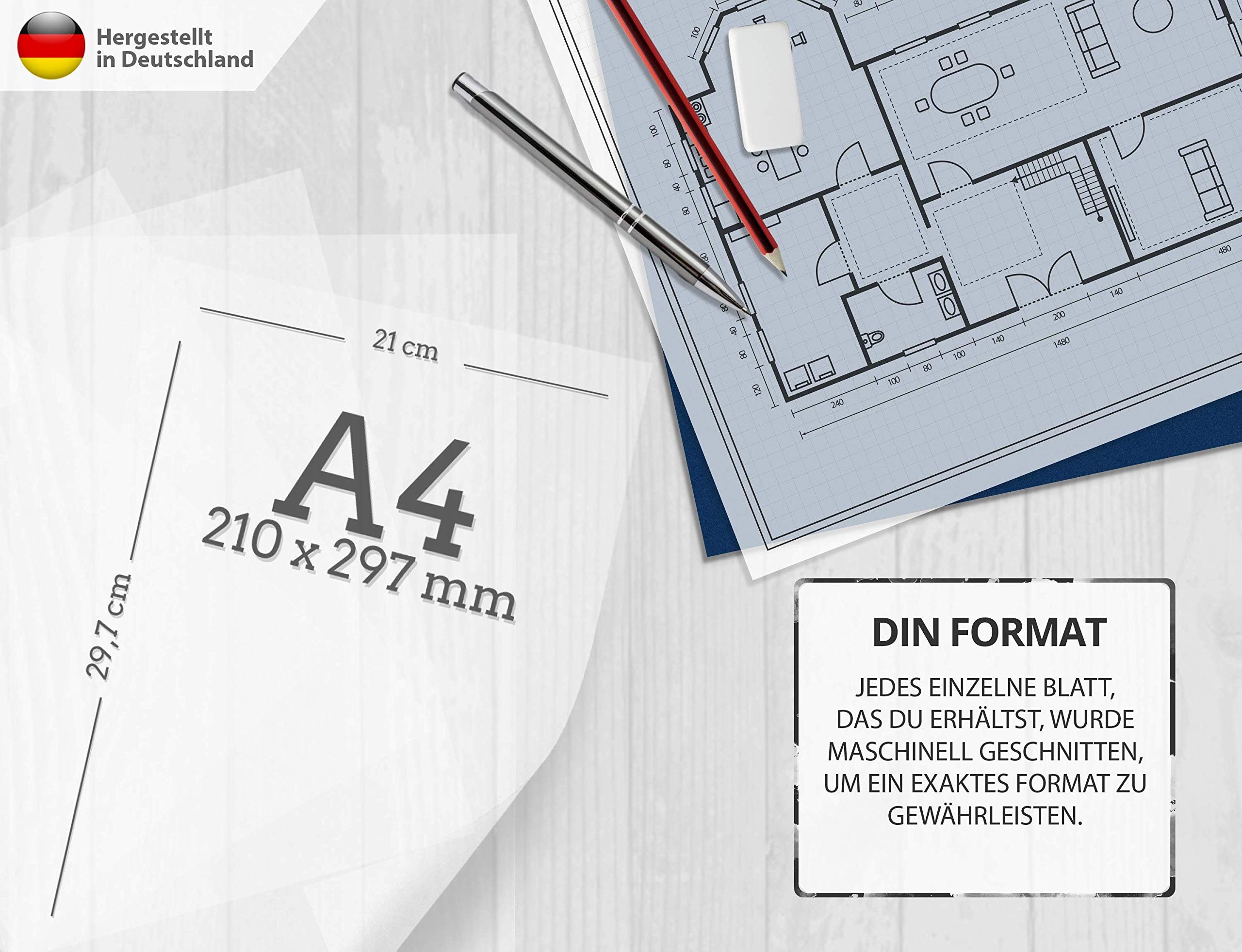 Hey du kreativer Kopf! Dieses Transparentpapier-Set ist genau das Richtige für deine Bastelprojekte. Mit 80 Blättern im A4-Format hast du genug Material für alle deine Ideen. Das 112g Papier ist schön stabil und trotzdem super transparent - perfekt zum Pausen, Skizzieren oder für coole DIY-Karten. Du kannst es einfach im Drucker verwenden, ohne dass die Tinte verschmiert. Die glatte Oberfläche macht das Zeichnen total angenehm. Ob für Geschenkverpackungen, Laternen, Einladungen oder Architekturzeichnungen - dieses Papier ist ein echter Allrounder! Die Kanten sind sauber geschnitten, sodass du präzise arbeiten kannst. Und das Beste: Es reißt nicht so schnell wie billiges Transparentpapier. Hol dir dieses Set und lass deiner Kreativität freien Lauf - ob für die Schule, den Beruf oder einfach nur zum Spaß!