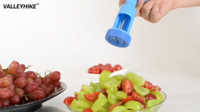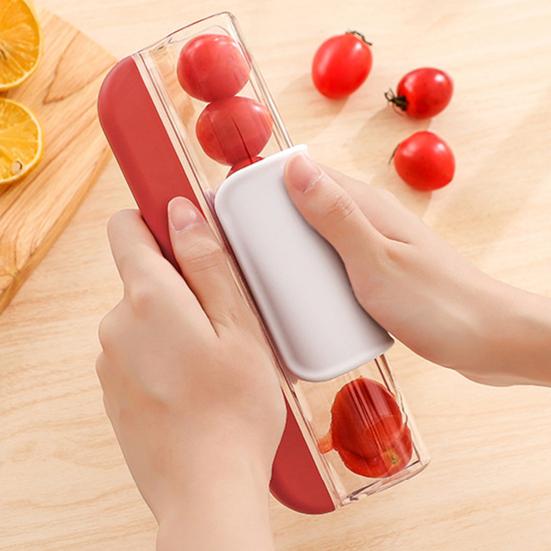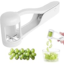 Der praktische Obstschneider macht die Zubereitung von Kinder-Snacks zum Kinderspiel! Perfekt für Trauben, Kirschtomaten, Erdbeeren und Blaubeeren. Einfach die Frucht in den Schneider setzen, mit leichtem Daumendruck drücken - schon hast du vier perfekte Stücke! Besonders sicher für die Zubereitung von Kinderessen, reduziert Erstickungsrisiko. Aus lebensmittelechtem Edelstahl und BPA-freiem ABS. Die gezackte Edelstahlklinge schneidet präzise ohne die Fruchthaut zu beschädigen. Ergonomischer, rutschfester Griff für komfortable Handhabung. Spülmaschinenfest und leicht zu reinigen. Ideal für Salate, Desserts, Cocktail-Garnituren und Lunchboxen. Achtung: Enthält scharfe Klinge, nur für Erwachsene geeignet. Tolle Geschenkidee für junge Familien! Maße: kompakt und platzsparend. Macht Obst-Snack-Vorbereitung zeitsparend und sicher.