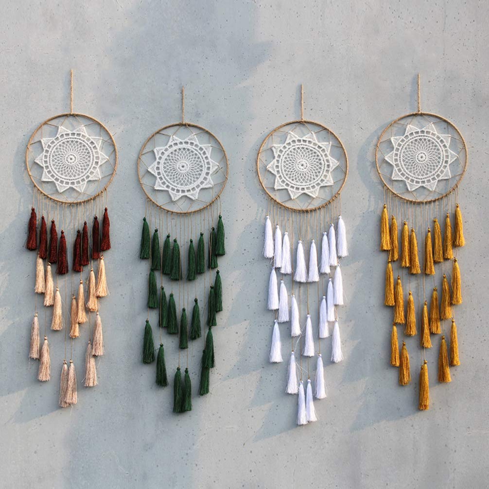 Handgemachter Traumfänger Mit Quasten - Böhmische Wanddekoration In Weiß