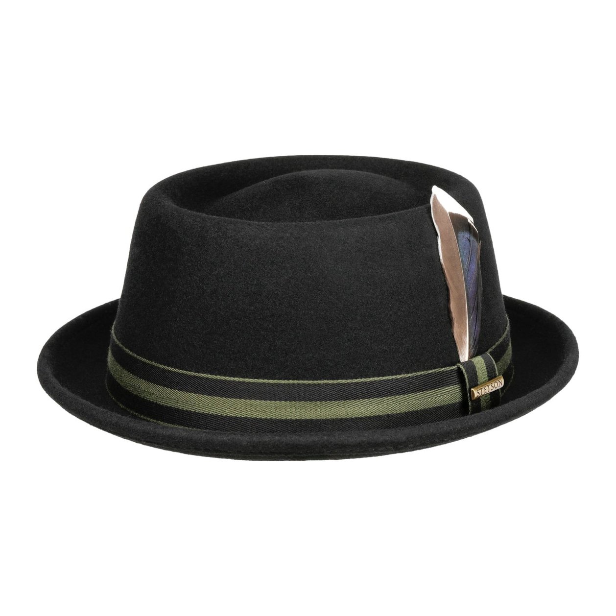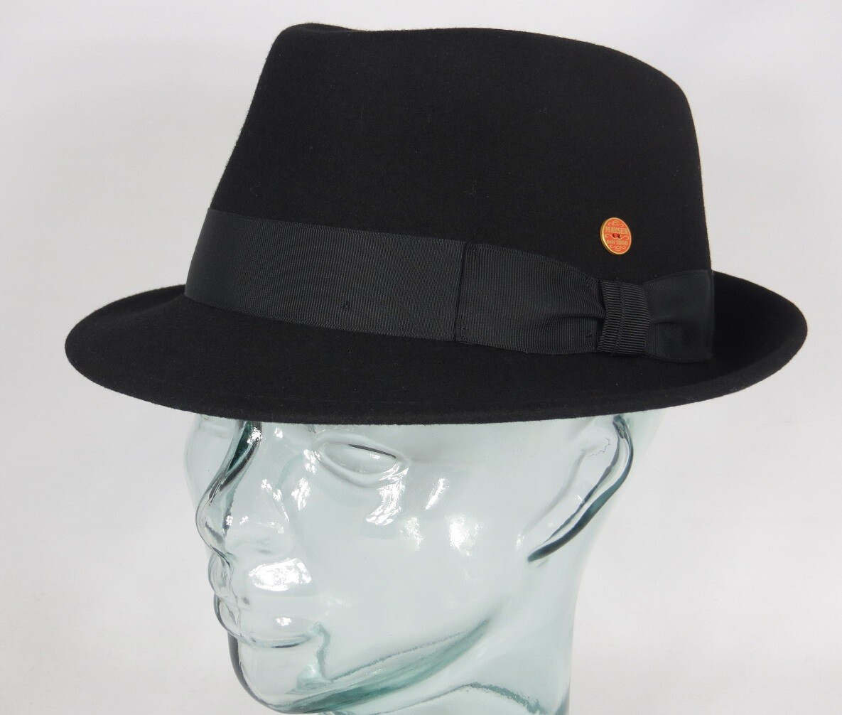 Mit 7 cm breiter Krempe und 9,5 cm Kopfhöhe sitzt er perfekt. Das dezente Ripsband mit Schleife und der Markenpin geben dem Hut diese besondere Note.