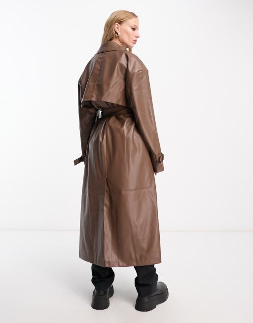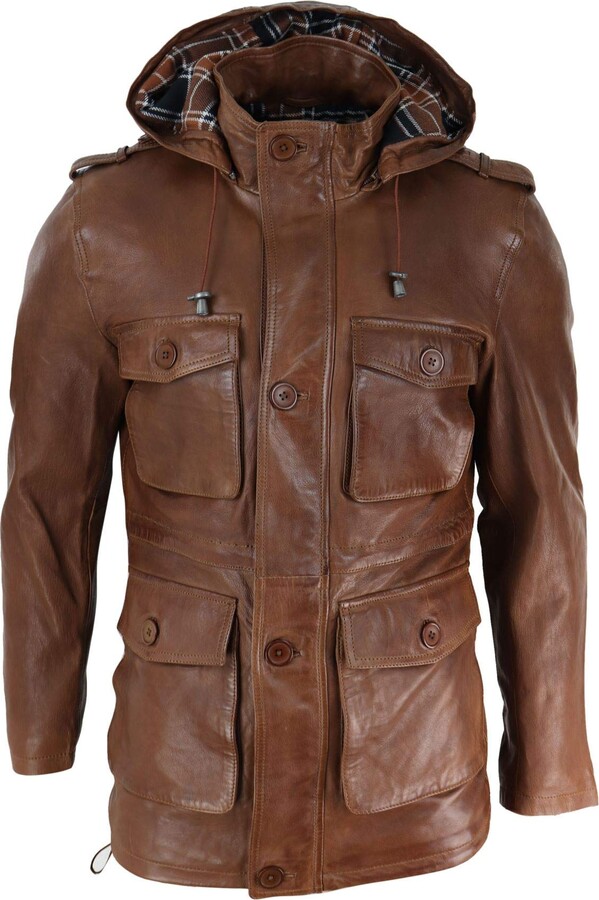 MAXDUD Herren Trenchcoat Assassin - Brauner Echtleder & Kunstleder Mantel Mit Kapuze
