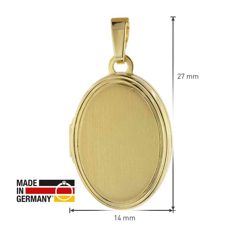 Hey Schmuck-Liebhaber! Diese wunderschöne trendor Damen-Kette mit Medaillon ist ein echter Klassiker! Das ovale Medaillon aus goldplattiertem Sterlingsilber 925 (Made in Germany) begeistert mit einem edlen Onyx-Cabochon und funkelnden Zirkonia-Steinen. Besonders praktisch: Das Medaillon lässt sich öffnen und bietet Platz für zwei persönliche Fotos - perfekt für Erinnerungen an Liebste! Die stabile Silberkette mit Goldplattierung (1,5mm Stärke) und Federring-Verschluss liegt perfekt am Hals. Mit 23x17mm Größe ein dezenter aber wirkungsvoller Hingucker. Inklusive Mikrofasertuch zur Pflege. Ideal als Geschenk für Geburtstage, Valentinstag oder Weihnachten - verpackt in einer trendor Schmuck-Box. Mach dir oder einer lieben Person eine Freude mit diesem zeitlosen Schmuckstück!
