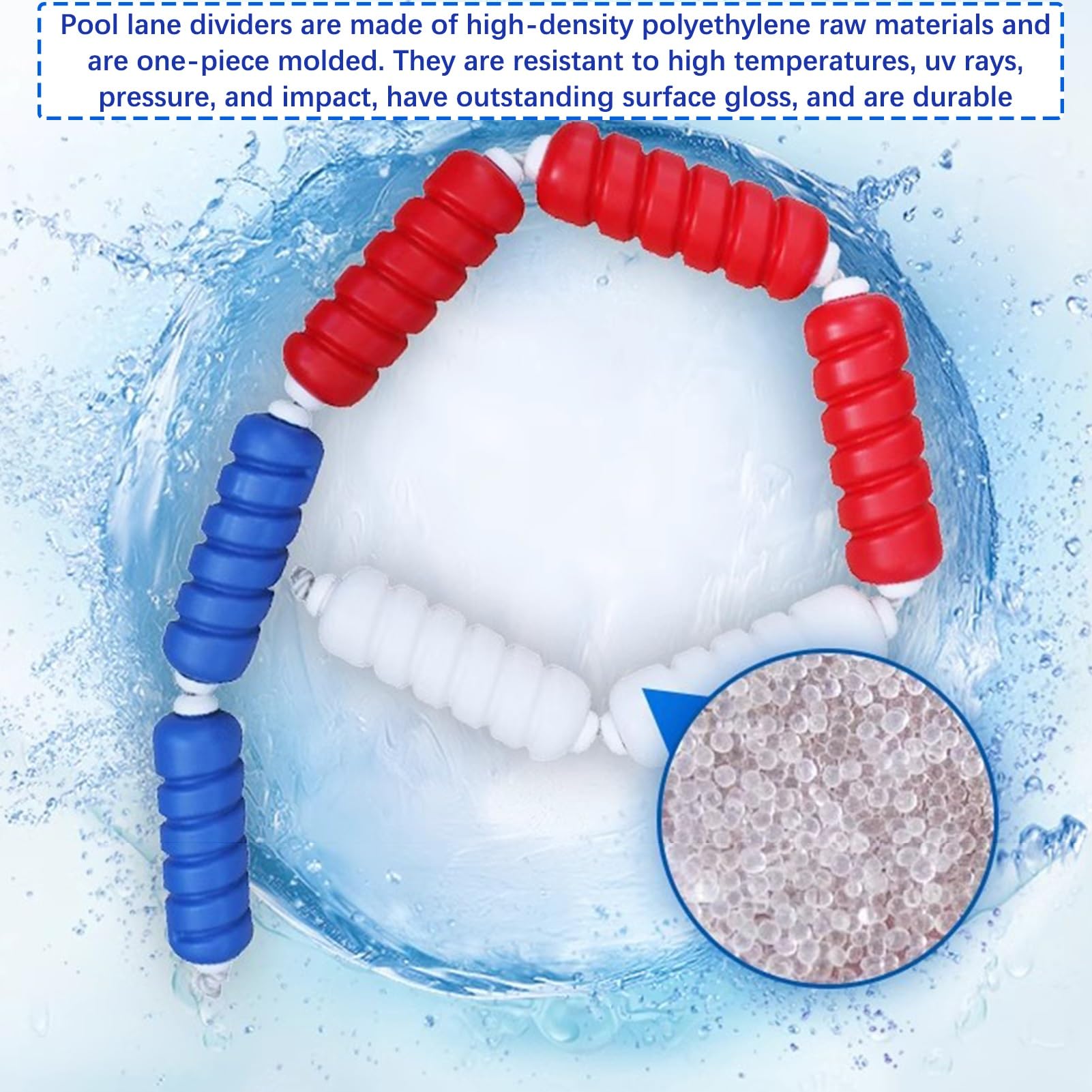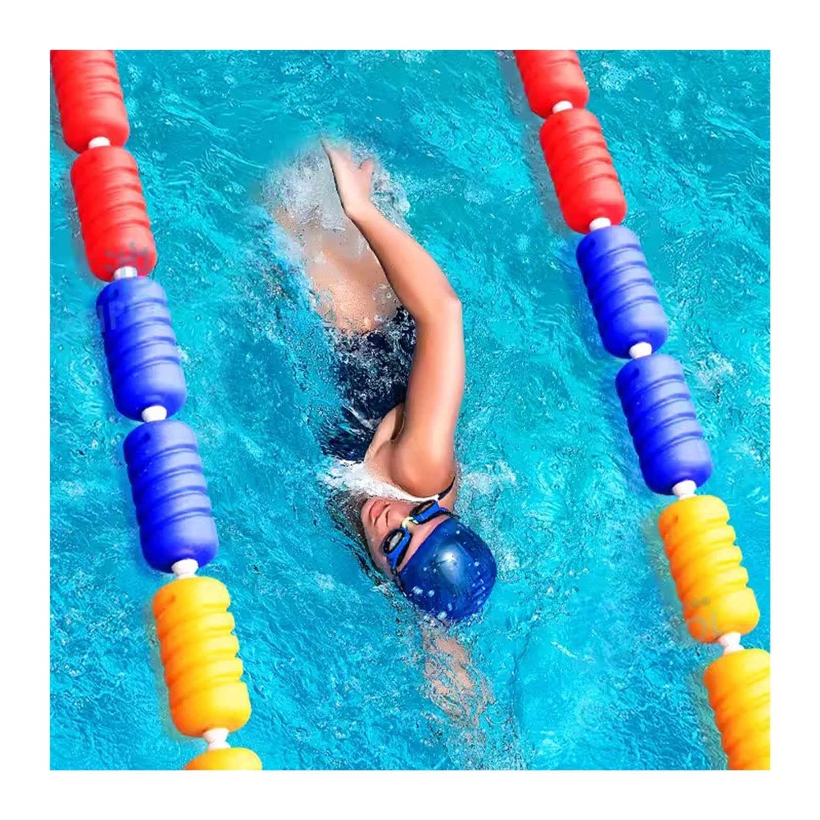 Perfekte Ordnung im Schwimmbad! Diese 15m lange Trennleine mit 6cm Bojen sorgt für klare Bahneneinteilung. Aus robustem Polyethylen und Nylonseil - schwimmfähig, UV-beständig und langlebig.