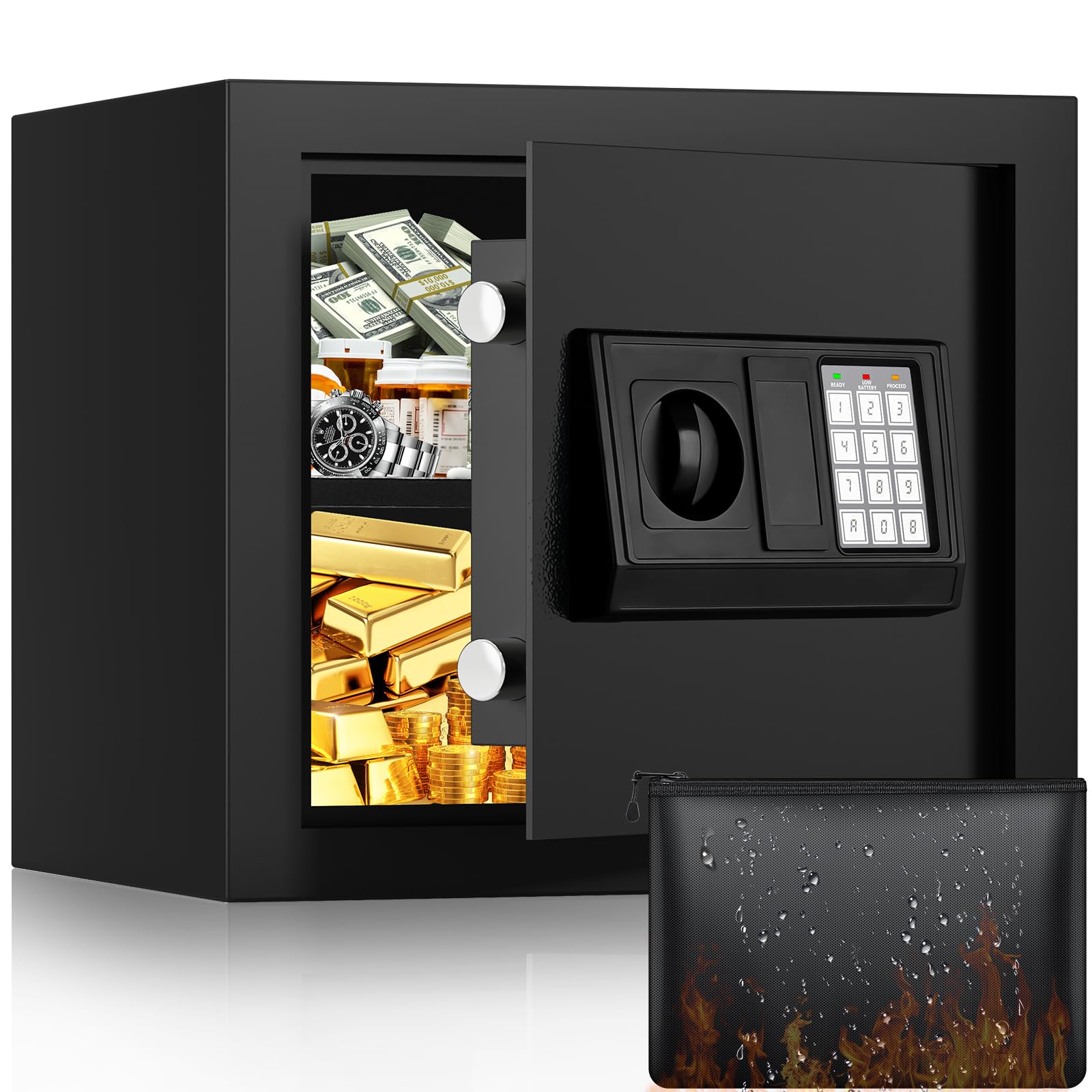 Deine Wertsachen verdienen besten Schutz! Dieser Stahlex Elektronische Tresor bewahrt deine wichtigsten Dinge sicher auf - ob Schmuck, Dokumente oder Bargeld. Mit einer Doppelbolzenverriegelung ist er richtig einbruchsicher und kann sowohl an der Wand als auch am Boden befestigt werden. Das coole Feature: Nach drei falschen Code-Einggaben löst ein Alarm aus - so merkst du sofort, wenn jemand Unbefugtes zugreifen will. Falls du mal den Code vergisst, kein Problem - zwei Notschlüssel sind im Lieferumfang enthalten. Der Safe läuft mit 4 AA-Batterien, braucht also keine Steckdose in der Nähe. Und das Beste: Er ist feuerresistent und schützt deine Wertgegenstände bis zu 15 Minuten bei Feuer! Die Maße von 170 x 230 x 170 mm bieten genug Platz für die wirklich wichtigen Dinge, ohne zu viel Raum wegzunehmen. Einfach Code einstellen, Batterien rein, aufhängen oder hinstellen - und schon hast du deine persönliche Schatzkammer! Perfekt für Zuhause, aber auch fürs Büro oder Geschäft. So machst du es Einbrechern richtig schwer und schläfst beruhigt.