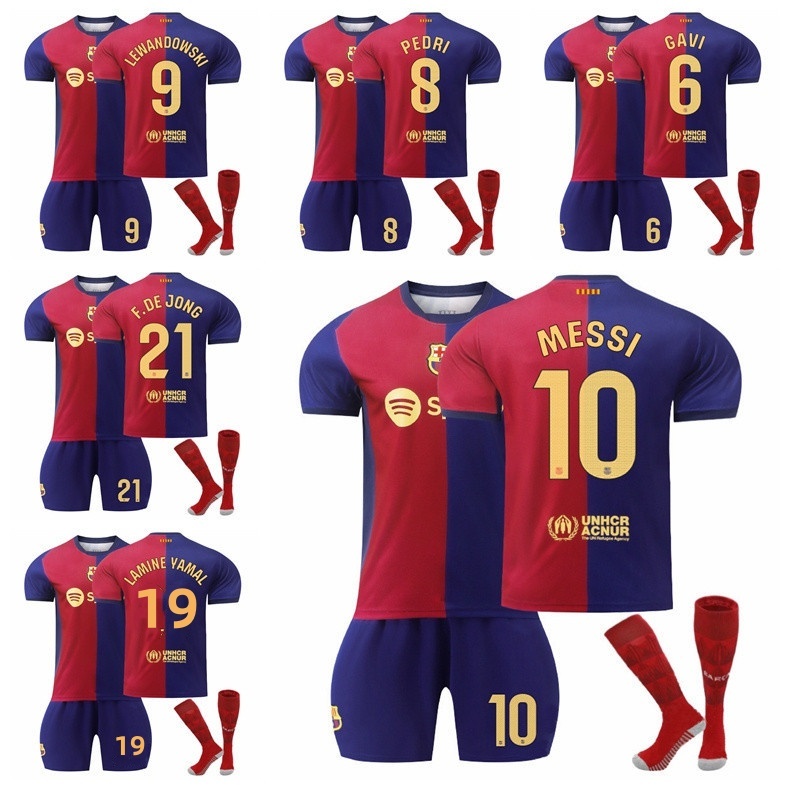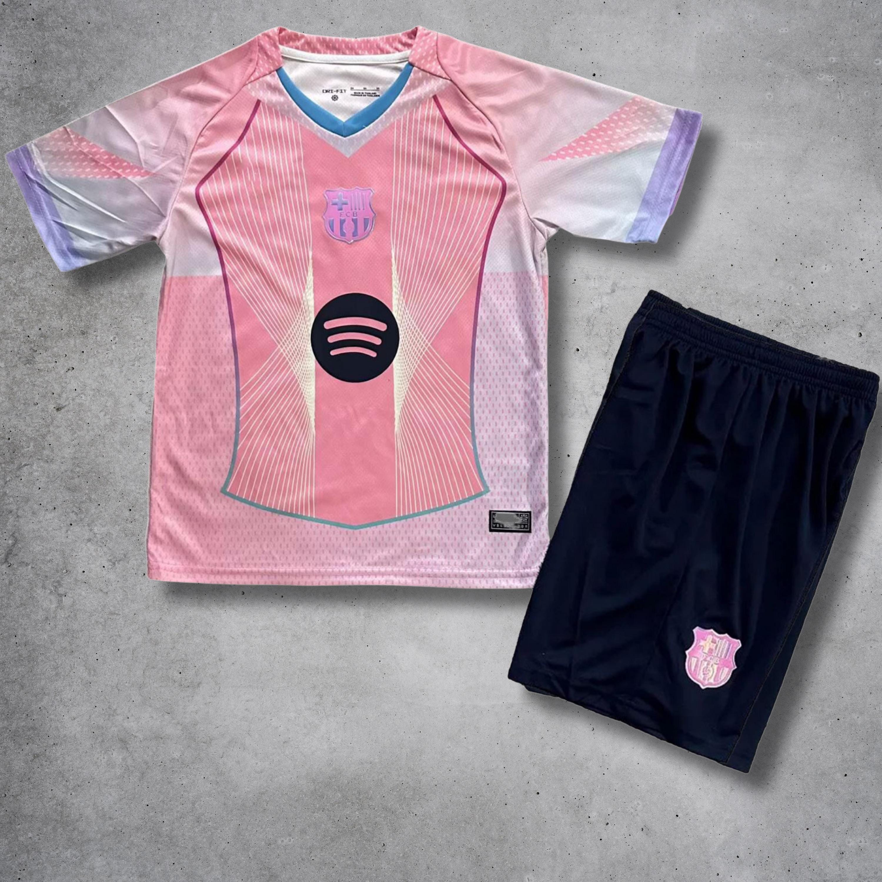 Für alle kleinen Barcelona-Fans! Dieses pinke Trikot-Set ist der Hit auf dem Fußballplatz. Komplett mit T-Shirt, Shorts und Socken - alles, was dein kleiner Star braucht. Aus atmungsaktivem, schnell trocknendem Material, das den Schweiß sofort ableitet. Super bequem und hautverträglich, auch bei langem Tragen. Perfekt für Training, Spiele oder einfach zum Angeben! Vor dem Kauf unbedingt die Größentabelle checken - wenn's lieber loose sitzen soll, einfach eine Größe größer bestellen. Leicht zu waschen (Kaltwäsche) und trocknet schnell. Das ideale Geschenk für junge Fußballbegeisterte! Ob zum Geburtstag, zu Weihnachten oder einfach so - damit machst du garantiert glückliche Augen. Unterstützt euer Lieblingsteam in style!