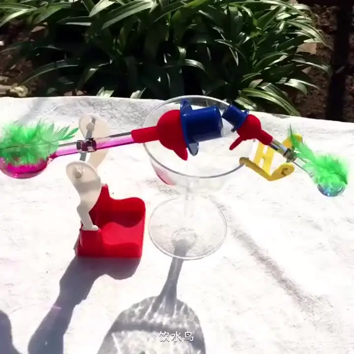 Dieser niedliche Trinkvogel wird dich stundenlang faszinieren! Ein klassisches Physik-Spielzeug, das scheinbar unendlich in Bewegung bleibt. Perfekt für den Schreibtisch oder als Gesprächsstoff im Büro.\n\nSo funktioniert's:\n• Vogel mit Wasser benetzen\n• Glas mit Wasser füllen\n• Vogel in Position bringen\n• Und zuschauen wie er trinkt!\n\nTechnische Daten:\n• Größe: 5x5x18cm\n• Material: Glas und Kunststoff\n• Farbe: Blau\n• Funktioniert ohne Batterien\n\nWarum dieses Spielzeug toll ist:\n• Zeigt physikalische Prinzipien\n• Fördert Neugier und Lernen\n• Entspannend zu beobachten\n• Macht Spaß für Groß und Klein\n• Ideal gegen Langeweile\n\nPerfekt für:\n• Schreibtisch im Büro\n• Physik-Unterricht\n• Als Geschenk für Technik-Fans\n• Wartezimmer und Empfangsbereiche\n• Zum Entspannen und Abschalten\n\nEinfach aufstellen und sich von der faszinierenden Bewegung verzaubern lassen. Der Vogel trinkt scheinbar unendlich weiter - ein echter Hingucker!\n\nAchtung: Nicht für Kinder unter 3 Jahren geeignet - entsteht kleine Teile. Unter Aufsicht von Erwachsenen verwenden!