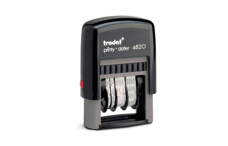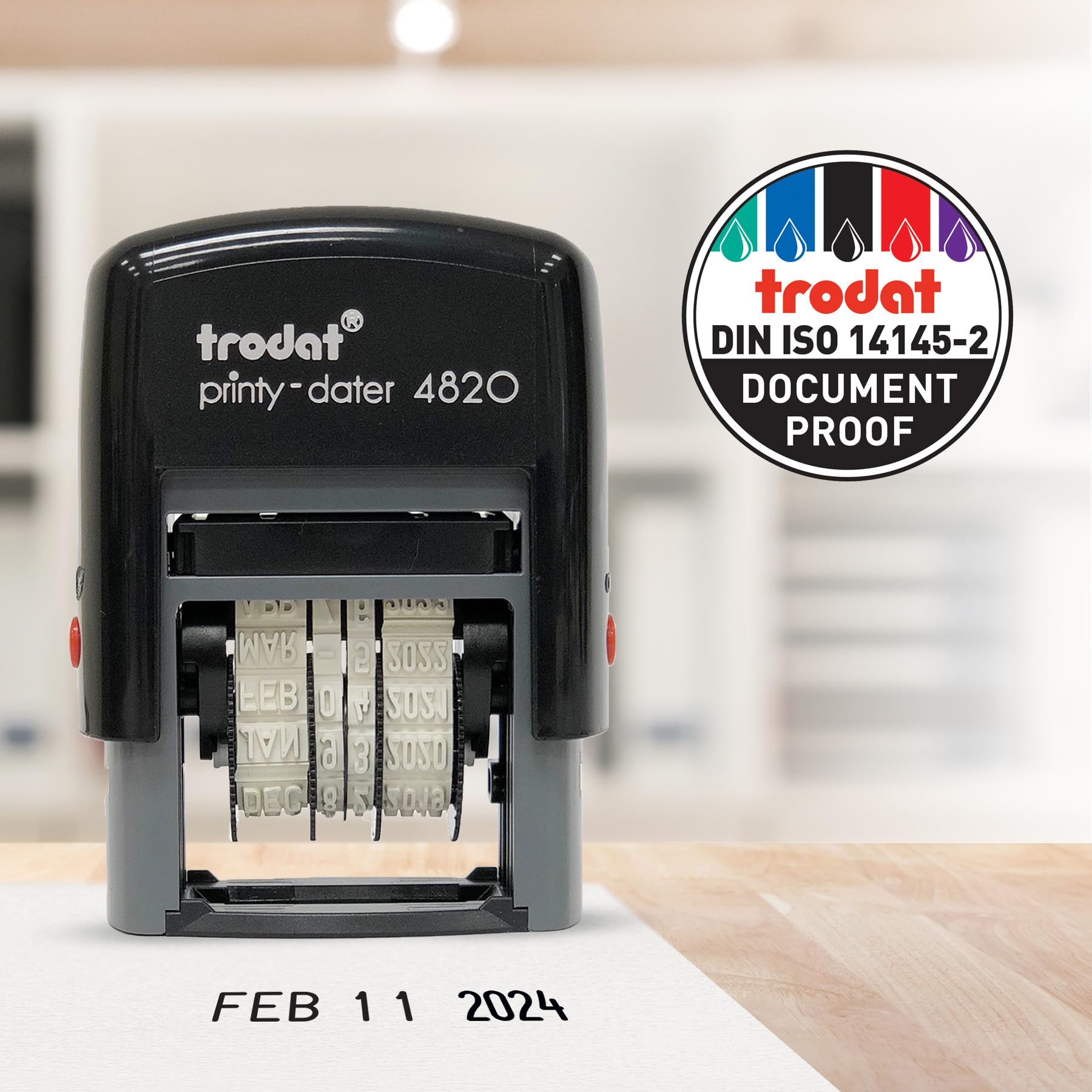 Ordnung muss sein - und mit dem Trodat Printy 4820 Datumsstempel hast du immer das aktuelle Datum parat! Dieser professionelle selbstfärbende Stempel ist das perfekte Werkzeug fürs Büro, um Dokumente, Rechnungen, Lieferpapiere oder Firmenpost zu datieren. Die 4mm hohe Schrift sorgt für klare, gut lesbare Abdrucke, die auch nach Jahren noch gut zu erkennen sind. Das geniale selbstfärbende System macht lästige Stempelkissen überflüssig - einfach stempeln und fertig! Das Gehäuse aus hochwertigen Recycling-Materialien ist nicht nur umweltfreundlich, sondern auch robust und langlebig. Die Datumsringe lassen sich einfach drehen, sodass du das Datum schnell anpassen kannst - kein mühsames Einstellen mehr. Kompakt genug, um nicht viel Platz auf dem Schreibtisch wegzunehmen, aber ergonomisch geformt für bequemes Halten. Wichtig: Der Stempel wird OHNE Stempelfarbe geliefert, sodass du deine Wunschfarbe (blau, schwarz, rot...) nach Bedarf auswählen kannst. Perfekt für Unternehmen, Behörden, Praxen oder jeden, der viel mit Dokumenten arbeitet und Wert auf Ordnung und Professionalität legt. Einfach die gewünschte Farbe kaufen, einsetzen und schon kann's losgehen - simpler und effizienter geht's wirklich nicht!