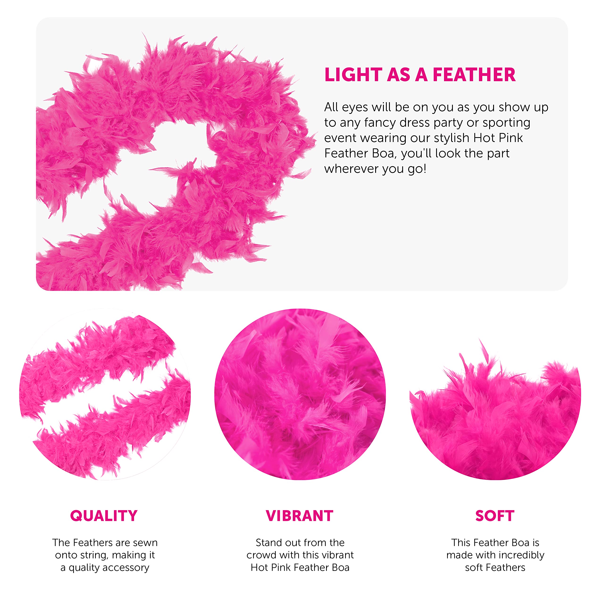 Party-Liebhaber, diese Federboa ist ein absoluter Hingucker für jeden festlichen Anlass! Mit satten 2 Metern Länge und einer Breite von 10-13cm ist sie schön flauschig und voll. Hergestellt aus natürlichen Truthahnfedern, die professionell gereinigt wurden - super weich und angenehm auf der Haut. Perfekt für Kostüme, Tanzen, Hochzeiten, Junggesellenabschiede, Cosplay oder Halloween. Die Federn sind an einer Baumwollschnur befestigt und lassen sich vielseitig einsetzen - ob als Kleidungsaccessoire, Tischdekoration oder für DIY-Projekte. Einfach umlegen und sofort im Party-Feeling sein! Auch für die Heimdekoration super geeignet - ob für den Kamin, Lampenschirme oder als Boudoir-Deko. Ein echter Allrounder, der jede Feier aufwertet und für glamouröse Stimmung sorgt!