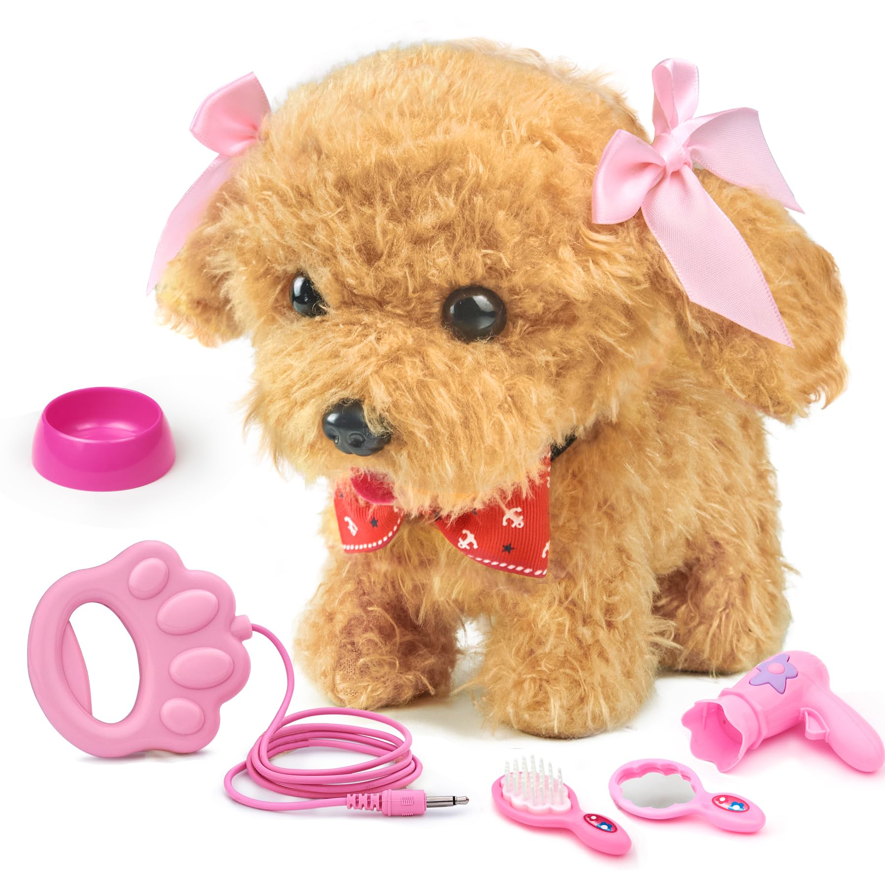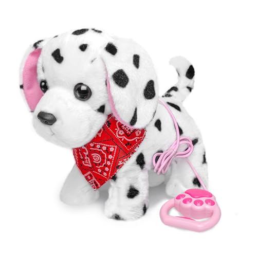 So süß! Dieser elektronische Plüschwelpe von tumama wird zum besten Freund deines Kindes. Der etwa 20cm große Hund kann laufen, bellen, mit dem Schwanz wedeln und den Kopf schütteln. Gesteuert wird er entweder per Fernbedienungsleine oder einfach durch Klatschen und Streicheln. Im Set sind super viele Accessoires dabei: Hundehütte, Hut, Krawatte, Schüssel, Gummiknochen und sogar ein Malset zum Bemalen der Hütte! Benötigt 3 AA-Batterien (nicht im Lieferumfang). Perfekt für Kinder ab 3 Jahren - ein tolles Geschenk zu Geburtstag, Weihnachten oder einfach so. Fördert die Fantasie und macht einfach riesig Spaß!