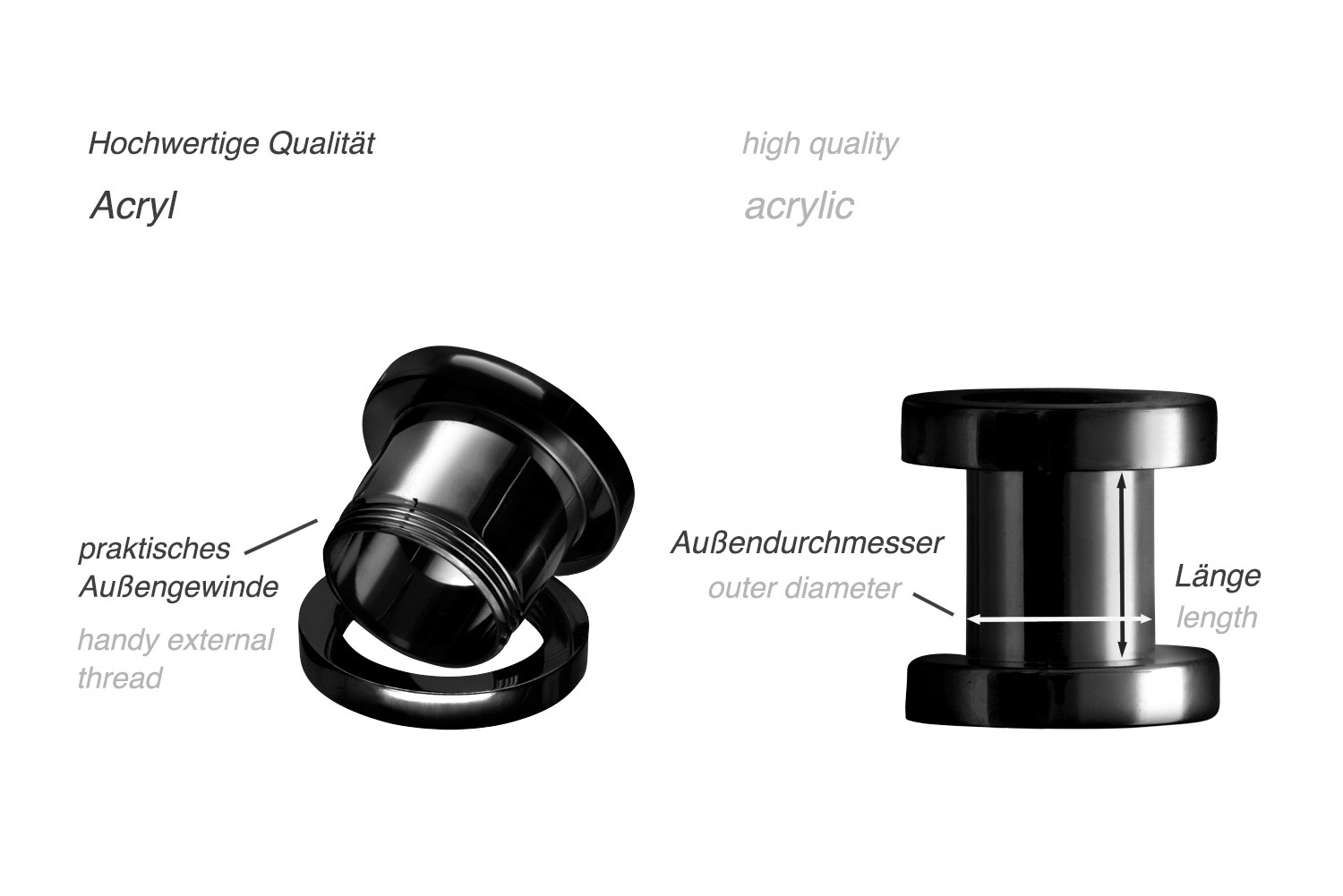 Leicht und stylisch! Dieser durchsichtige Acryl-Tunnel ist perfekt für dein Ohr-Piercing. Mit abschraubbarer Rückseite für einfaches An- und Ablegen. Super leicht und wasserabweisend - ideal für Sport, Strand oder Alltag. Die Innenlänge beträgt 6mm bei 10mm Durchmesser. Sieht aus als würde er schweben! Einfach zu reinigen und angenehm zu tragen. Perfekt für alle, die es minimalistisch und modern mögen.