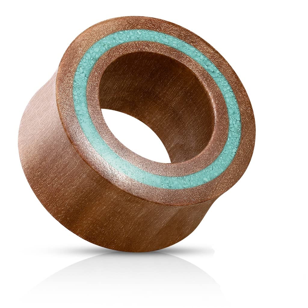 Beyoutifulthings Ohr-Tunnel Sawo Holz Mit Türkis - Sattelverschluss 8-25mm