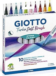 Hey, diese Giotto Turbo Soft Brush Marker sind ja mal total vielseitig! Mit der weichen, flexiblen Pinselspitze kannst du feine oder breite Striche machen - wie mit nem echten Pinsel. Die 10 Pastellfarben sind super schön: Rosa, Braun, Babyblau, Orange, Blaugrün, Violett, Gelb, Blau, nochmal Violett und Birnengrün. Alles wasservermalbar - du kannst tolle Verläufe und Effekte machen. Perfekt für Lettering, Ausmalen, Karten basteln oder verschiedene Maltechniken. Liegen gut in der Hand und die Farben leuchten richtig. Einfach ein Traum für alle Kreativen - ob Anfänger oder Profi! Damit macht Malen und Zeichnen richtig Spaß.