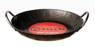 Koch-Profis aufgepasst! Diese Turk Bratpfanne aus Eisen ist ein absolutes Kraftpaket. Mit stolzen 45 cm Durchmesser und einem extra hohen 6 cm Rand ist sie perfekt für große Portionen - ob Bratkartoffeln, Steaks oder Pfannkuchen. Die schwere Ausführung aus Gusseisen sorgt für eine super gleichmäßige Hitzeverteilung, sodass nichts anbrennt. Mit zwei robusten Griffen lässt sie sich auch voll beladen noch sicher transportieren. Der Boden misst 36,5 cm und bietet genug Platz für alles, was du braten willst. Diese Pfanne ist einfach ein Allrounder für jede Küche - ob auf dem Herd oder im Backofen. Einmal richtig eingebrannt, wird sie zu deinem treuesten Küchenbegleiter. Perfekt für alle, die Wert auf Qualität und Langlebigkeit in der Küche legen!
