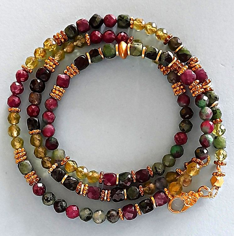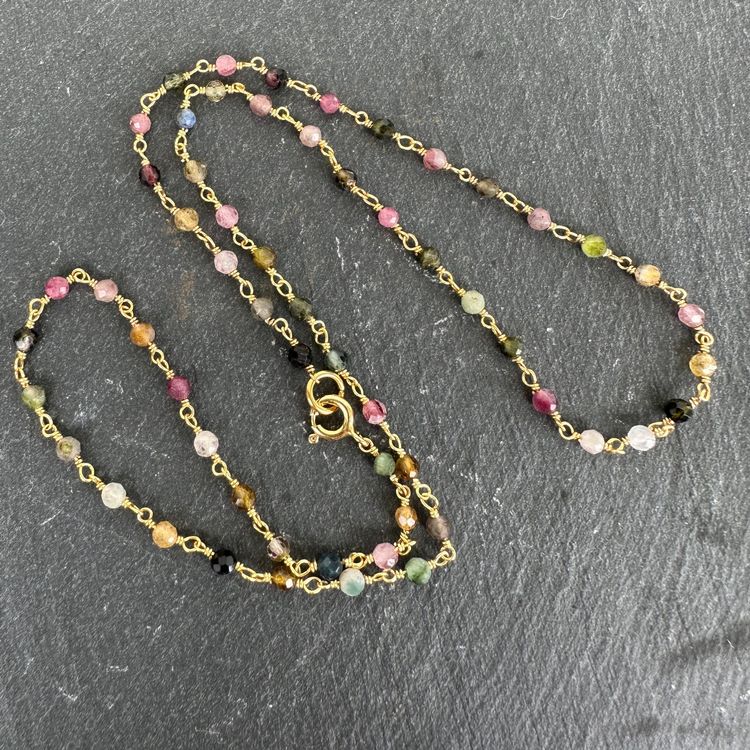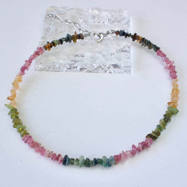 Suchst du ein besonderes Schmuckstück? Diese wunderschöne Halskette von NirvanaIN mit bunten, facettierten Turmalin-Steinen ist ein echter Hingucker! Die Steine (3-4 mm) stammen aus Madagaskar und sind naturbelassen - jedes Stück ist ein Unikat. Mit 45 cm Länge und einem Karabiner-Verschluss (8 mm) sitzt die Kette perfekt. Ideal als Geschenk für besondere Anlässe wie Weihnachten, Valentinstag, Muttertag oder Geburtstage. Aber auch für dich selbst - ob zur Party, Hochzeit oder einfach im Alltag. Die Halskette wird sicher in Luftpolsterfolie verpackt und auf Wunsch auch als Geschenk. Und das Beste: Bei jedem Kauf gibt's ein kostenloses Geheimgeschenk dazu! Ein tolles Schmuckstück, das garantiert auffällt und Freude macht.