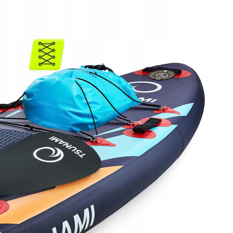 Wassersport-Fans, aufgepasst! Das Tuxedo Sailor Stand Up Paddle Board ist dein perfekter Partner für alle Wasserabenteuer. Mit stolzen 320cm Länge und extra breiter Form (30-33 Zoll) bietet es mega Stabilität - super also für Einsteiger, aber auch Fortgeschrittene haben ihren Spaß damit! Aus doppellagigem PVC in Militärqualität gebaut, ist dieses Board richtig robust und hält so einiges aus. Ob auf dem See, am Meer oder auf dem Fluss - dieses Board macht einfach alles mit. Das EVA-Deck ist rutschfest und angenehm weich, selbst wenn's nass wird. Und das Beste: Es ist aufblasbar! Nach dem Einsatz einfach die Luft rauslassen, zusammenfalten und im mitgelieferten Rucksack verstauen. Perfekt also für Urlaub, Camping oder spontane Ausflüge. Das Board kommt mit vollem Zubehör - Paddel, Pumpe, alles dabei. Du kannst damit nicht nur paddeln, sondern auch Yoga machen, angeln gehen oder einfach nur relaxen. Die spezielle Schwanzflossen-Optimierung sorgt für super Geradeaus-Fahrt und besseres Handling. Also, ob du jetzt Anfänger bist oder schon Erfahrung hast - mit dem Tuxedo Sailor wirst du viel Spaß auf dem Wasser haben! Einfach aufblasen und lospaddeln - die Natur wartet schon auf dich!