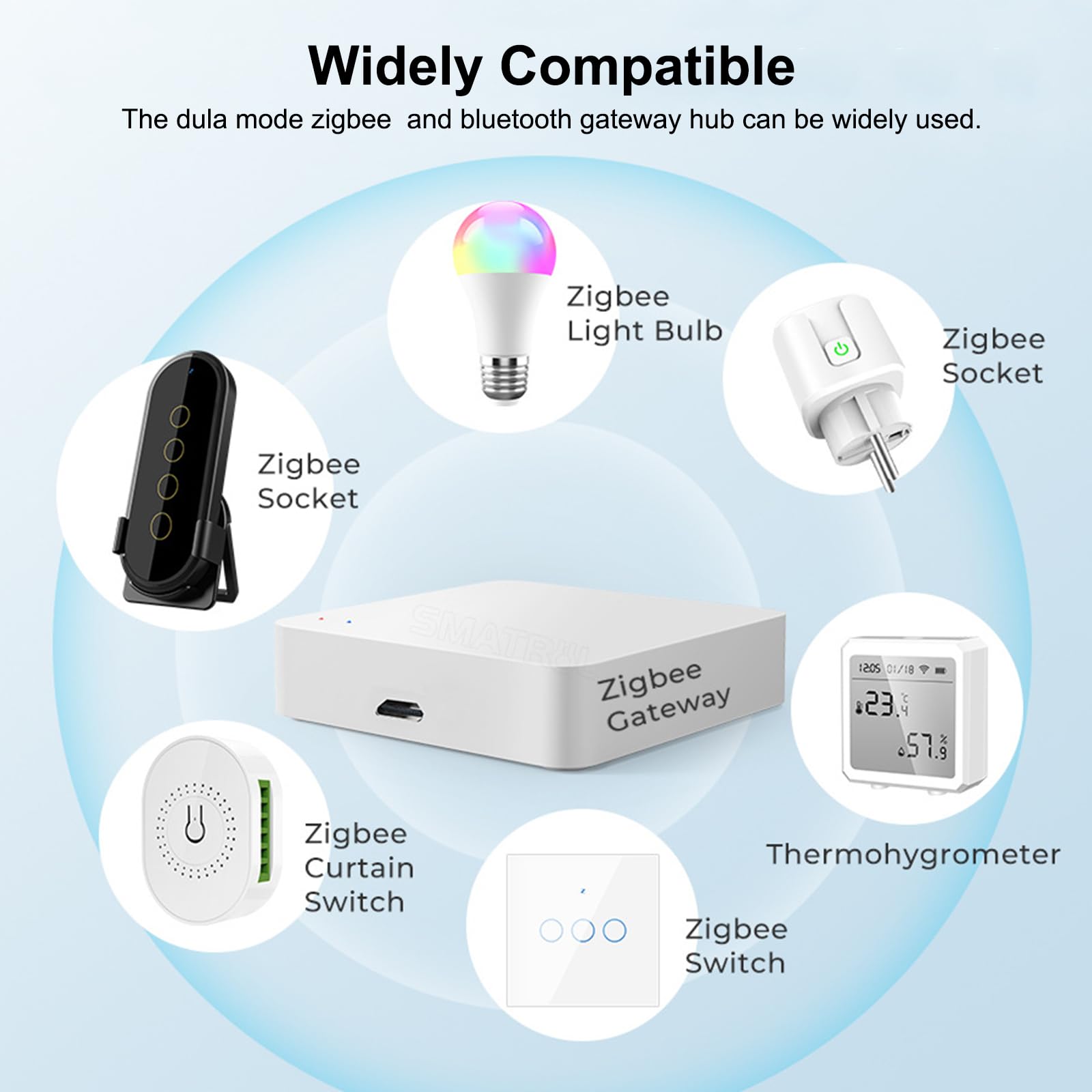 Dieses SHUAIGUO Gateway ist das Gehirn für dein smartes Zuhause! Mit Tuya, ZigBee UND Bluetooth in einem Gerät musst du dich nicht mehr zwischen Technologien entscheiden. Einfach per App einrichten und schon kannst du bis zu 50 Geräte steuern (30 sind aber empfehlenswerter damit's nicht zu unübersichtlich wird). Egal ob du unterwegs bist oder zuhause - über WLAN oder Mobilfunknetz hast du immer die Kontrolle über deine smarten Lichter, Steckdosen, Vorhänge oder was dir sonst noch so einfällt. Die Automatisierungs-Featuren sind der Hammer: Stell dir vor, die Lichter gehen automatisch an wenn du nach Hause kommst! Das weiße Design ist dezent und mit 60x60x15mm echt kompakt. Wird mit USB-Kabel geliefert, also einfach einstecken und loslegen. Perfekt für alle die ihr Zuhause smarter machen wollen ohne gleich mehrere Gateways kaufen zu müssen. Die LED-Anzeigen zeigen dir immer klar an was gerade passiert. Einfach genial!