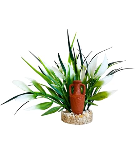 Dein Aquarium wird zum Blickfang! Diese künstliche Acorus-Pflanze ist 50 cm hoch und sieht täuschend echt aus. Mit gewichteter Keramikbasis steht sie stabil am Boden und bietet deinen Fischen ein sicheres Versteck. Hergestellt in Frankreich aus ungiftigen Materialien – absolut unbedenklich für deine tierischen Mitbewohner. Die Reinigung ist ein Kinderspiel: einfach mit kaltem Wasser abspülen. Perfekt für alle, die keine Lust auf aufwändige Pflanzenpflege haben!