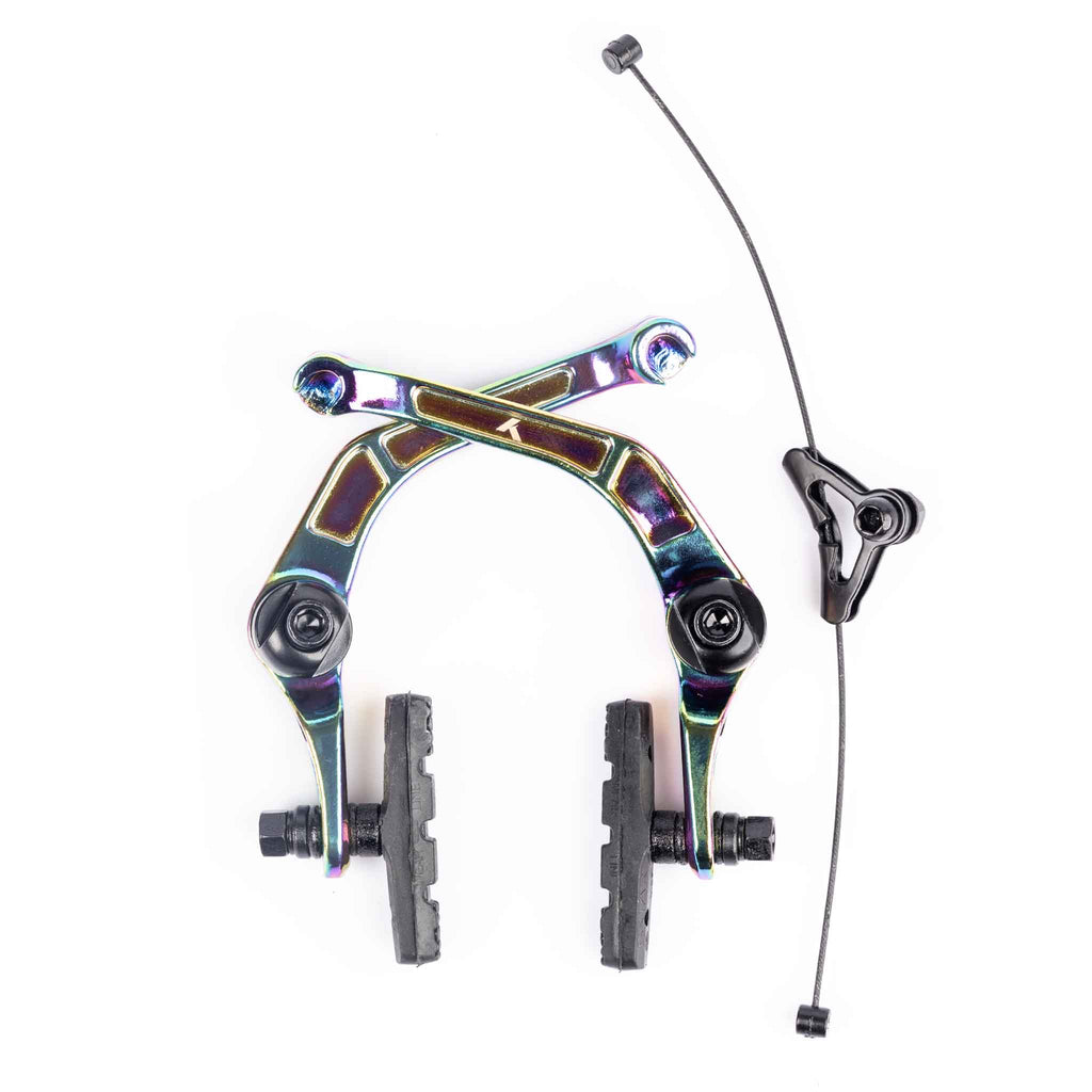Alter, diese KHE U-Brake ist ja der absolute Knaller für dein BMX! Mit nur 186 Gramm ist die richtig leicht und bringt trotzdem volle Bremskraft. Aus kaltgeschmiedetem 7005 Aluminium - das ist Qualität, die man spürt. Die Oil Slick Optik sieht einfach brutal gut aus und das KHE-Logo gibt dem ganzen den letzten Schliff. Aber das Beste: Jeder Bremsarm hat eine Spiralfeder, die du stufenlos einstellen kannst. So findest du genau den Bremsdruck, der zu deinem Style passt. Und der spezielle Winkel nach oben? Macht den Kabeverlauf einfach perfekt. Die Bremsbacken haben eine hochwertige Gummimischung - da hast du lange was von. KHE steht seit 1988 für Qualität und Innovation im BMX-Bereich. Egal ob für Tricks oder Street - diese Bremse macht einfach Laune. Einfach einbauen und losdüsen! Die Jungs von KHE wissen halt, was BMX-Fahrer brauchen. Mit der Bremse machst du auf jeden Fall was her und hast dazu noch ne Mega-Performance. Einfach top Preis-Leistung - da kannste nichts falsch machen!