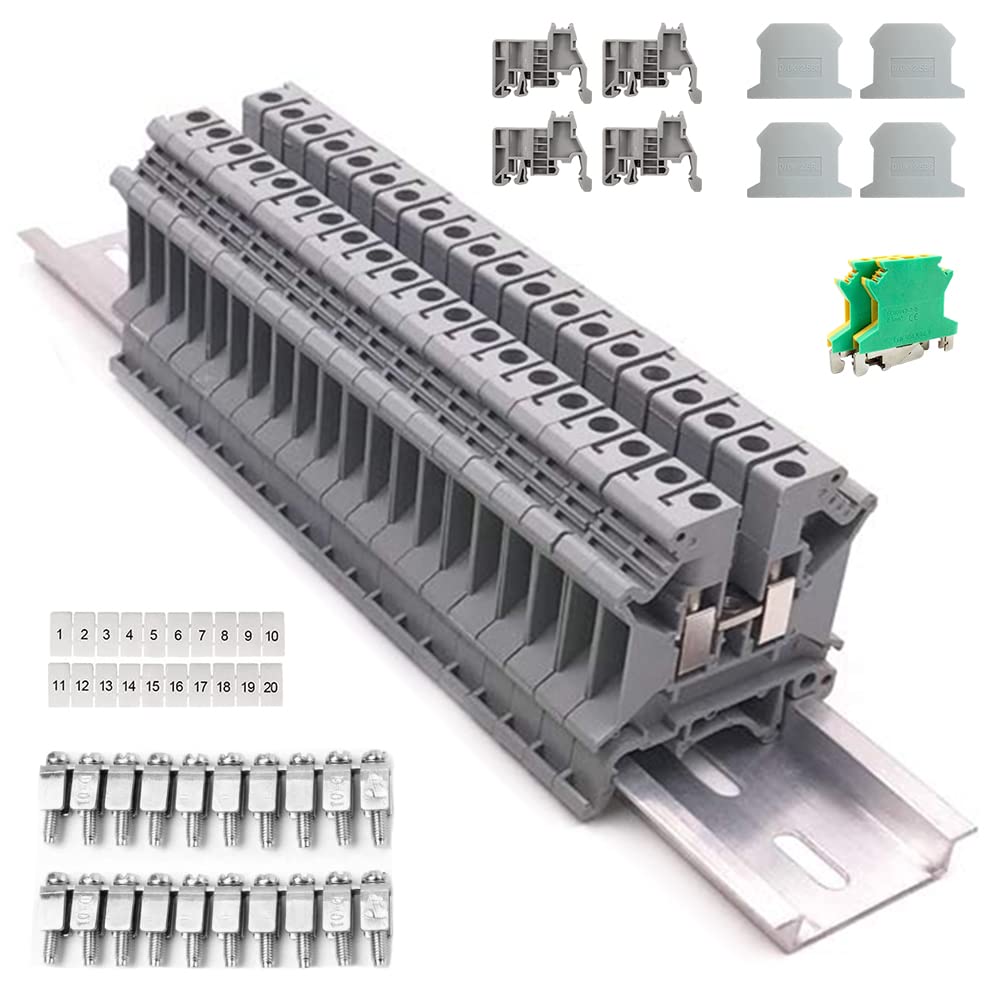 Alles was du für dein nächstes Elektro-Projekt brauchst! Dieses Komplett-Set mit Reihenklemmen ist perfekt für Hobby-Elektriker und Profis. Enthält 20 graue UK2.5N Klemmen, 2 farbige Klemmen, eine 22cm Aluminium-Schiene, Befestigungen, Stopper und Kurzschlussstreifen.
