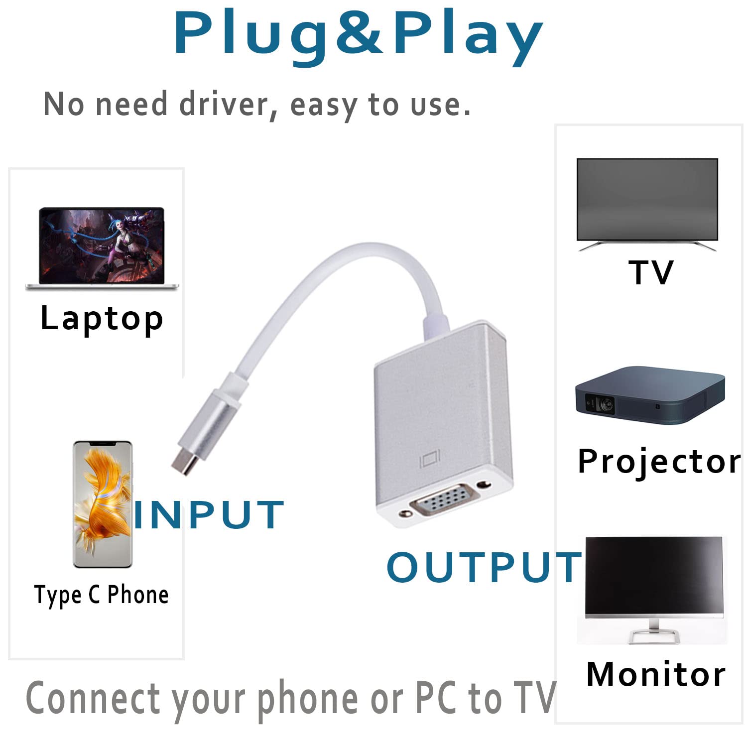Endlich deinen modernen Laptop mit alten Monitoren verbinden! Dieser USB-C auf VGA Adapter macht's möglich. Einfach einstecken und schon kannst du dein MacBook, Chromebook oder Dell XPS an VGA-Monitore, Beamer oder Fernseher anschließen. Unterstützt volle HD-Auflösung bis 1920x1080p - super scharfes Bild inklusive. Plug-and-Play, keine Treiber nötig. Perfekt für Präsentationen, Home-Office oder um den Bildschirm zu erweitern. Der vergoldete Stecker sorgt für beste Signalqualität und ist langlebig. Kompatibel mit MacBook Pro 2020, Google Chromebook, Lenovo 900, Dell XPS 13 und vielen mehr. Kleiner Adapter, großer Nutzen - hol dir die Freiheit, alle Displays zu nutzen!