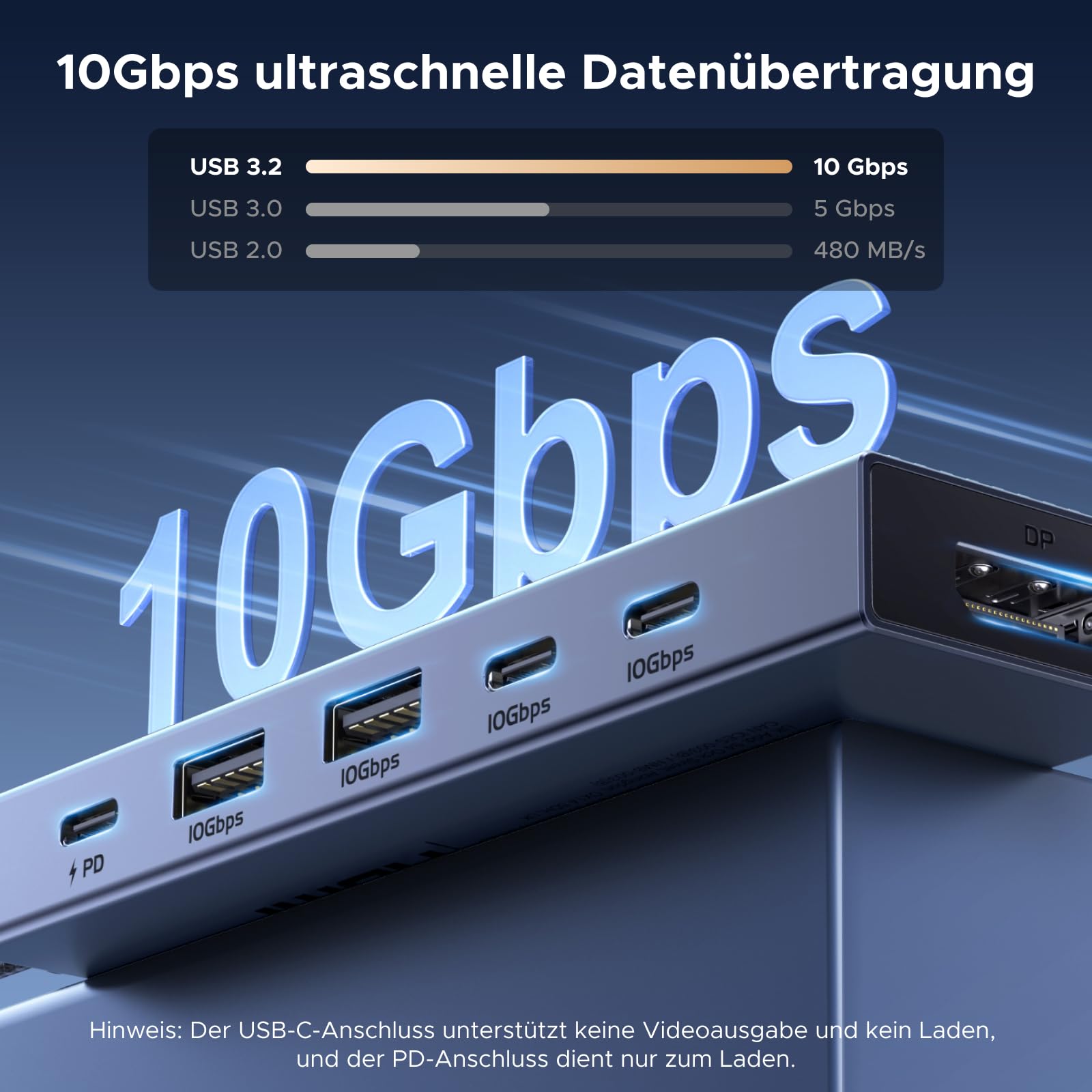 Laptop-Nutzer, diese UGREEN Docking Station ist der absolute Game-Changer! Mit DisplayPort für 4K@60Hz - super scharfe Bilder für Filme und Arbeit! 2x USB-A und 2x USB-C Ports mit 10Gbps - blitzschnelle Datenübertragung! 100W Power Delivery - ladet euren Laptop während der Arbeit! Plug-and-Play - keine Treiber nötig, einfach anschließen und loslegen! Kompatibel mit MacBook, iPad Pro, Surface und vielen anderen! Perfekt für Home-Office, Büro oder unterwegs! Macht aus eurem Laptop eine vollwertige Workstation! Endlich keine Kabelsalat mehr auf dem Schreibtisch! Einfach genial und so praktisch!