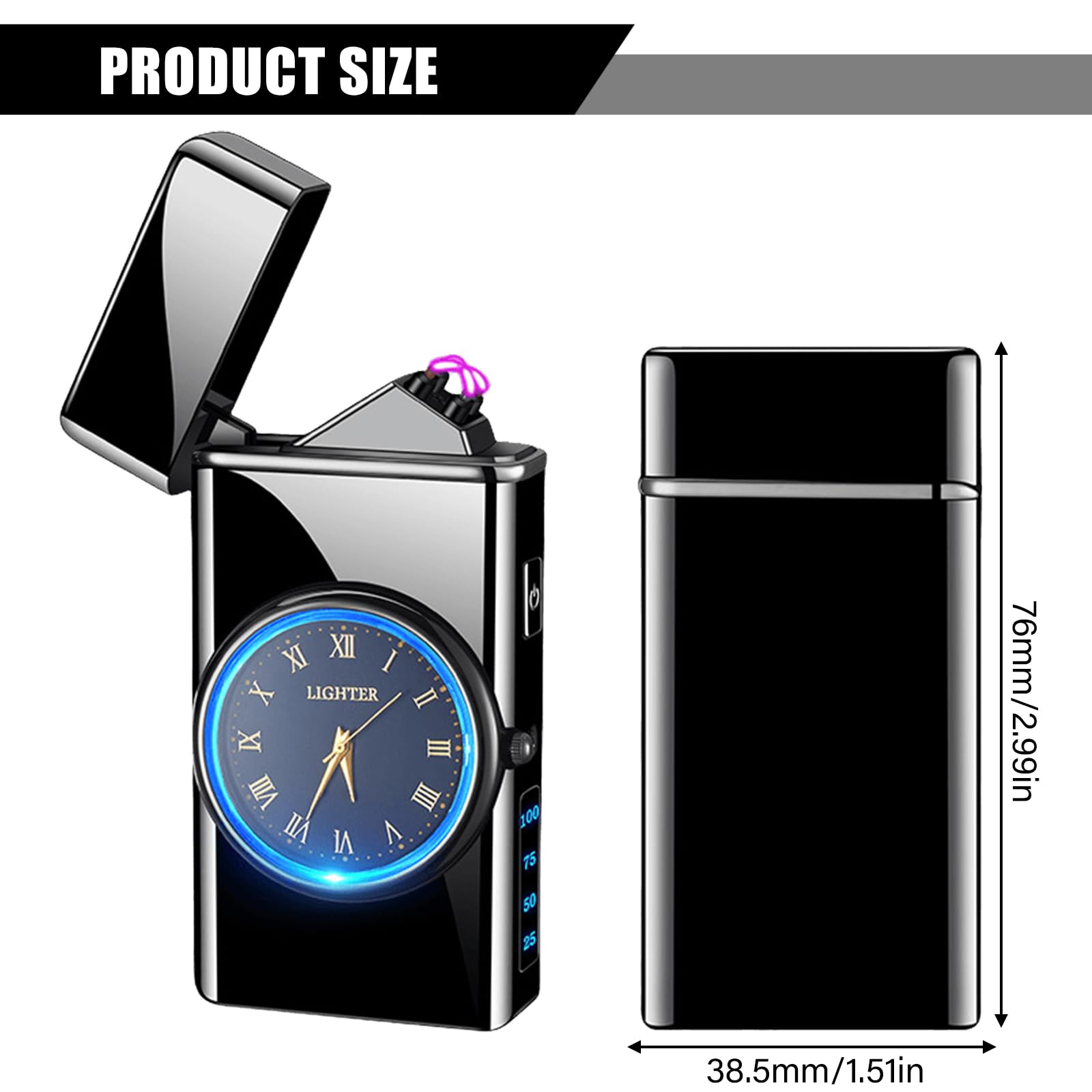 Das ist ja mal ein feuerzeug! Dieses coole Plasma-Feuerzeug kommt ganz ohne Gas aus - einfach per USB aufladen und los geht's. Der Doppel-Lichtbogen zündet sofort und ist komplett windunempfindlich. Das coole Zifferblatt mit LED-Uhr und blinkenden Lichtern ist ein echter Hingucker. Mit 4 LED-Anzeigen siehst du immer den Akkustand. Aus Zinklegierung gefertigt, fühlt sich hochwertig an und passt perfekt in die Tasche. Sicherheit wird groß geschrieben: Überhitzungs-, Überladungs- und Kurzschlussschutz sind integriert, plus 10-Sekunden-Automatikabschaltung. Perfekt für unterwegs, Partys oder als stylisches Accessoire. In der eleganten Geschenkbox macht es sich super als Präsent für Papa, Freunde oder dich selbst. Einfach aufladen, Knopf drücken und sich über das futuristische Design freuen! So macht Feuermachen Spaß - sicher, zuverlässig und absolut im Trend.