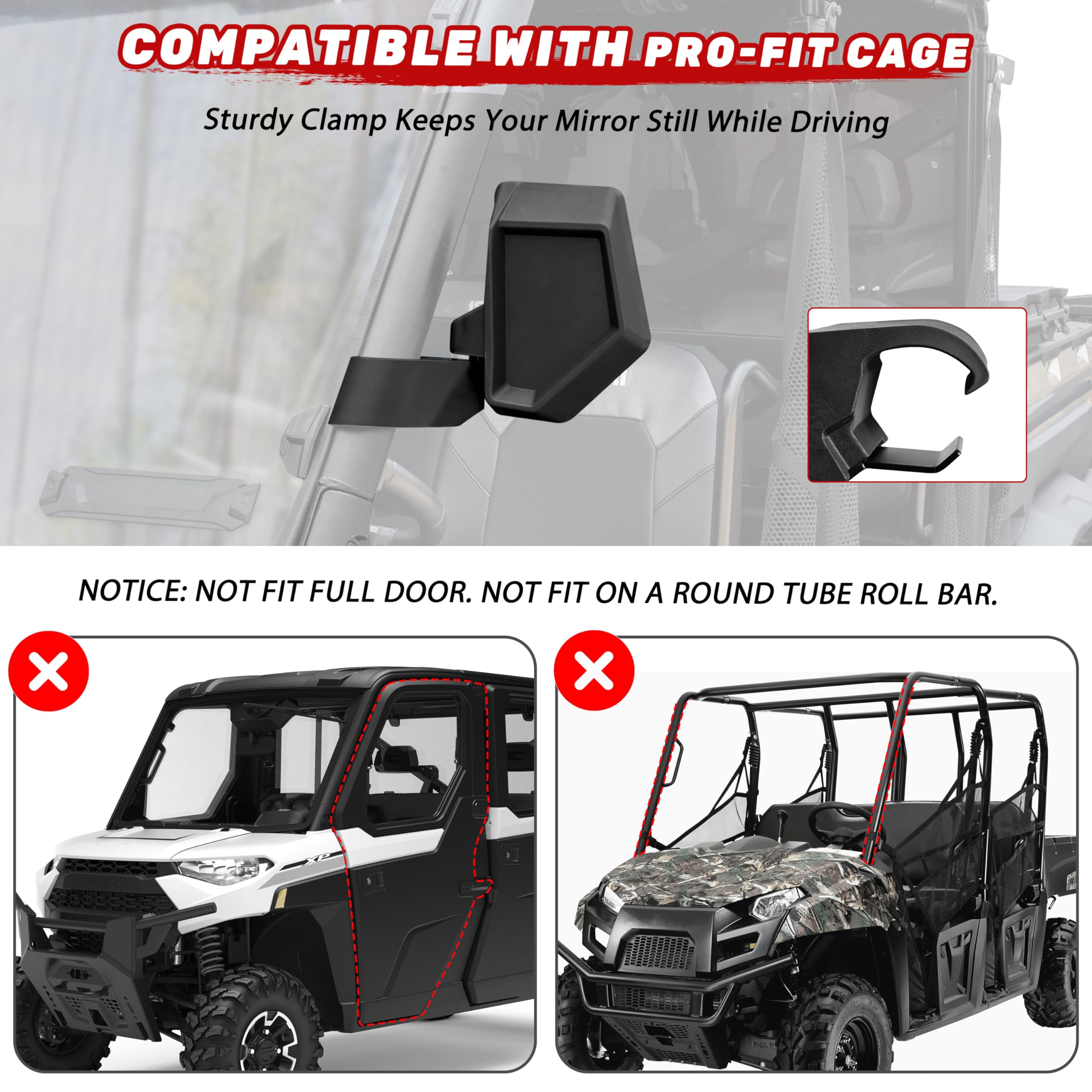 Mehr Sicherheit für deinen Polaris RANGER! Diese hochwertigen Rückspiegel passen perfekt für RANGER XP 1000 und RANGER CREW XP 1000 Modelle von 2018-2025, inklusive Special Editions wie TRAIL BOSS, HIGH LIFTER und NORTHSTAR. Aus robustem ABS-Material gefertigt, sind sie reibungs- und korrosionsbeständig - ideal für den Offroad-Einsatz. Das breite Sichtfeld und die hochauflösenden Gläser bieten klare Sicht ohne Verzerrungen. Eine spezielle Schutzfolie verhindert, dass bei Beschädigung Glassplitter herausfallen. Einfach zu montieren - passt für Werkstüren. Egal ob bei der Arbeit auf der Farm, beim Jagen oder beim Geländefahren - mit diesen Spiegeln behältst du immer den Überblick und fährst sicherer!